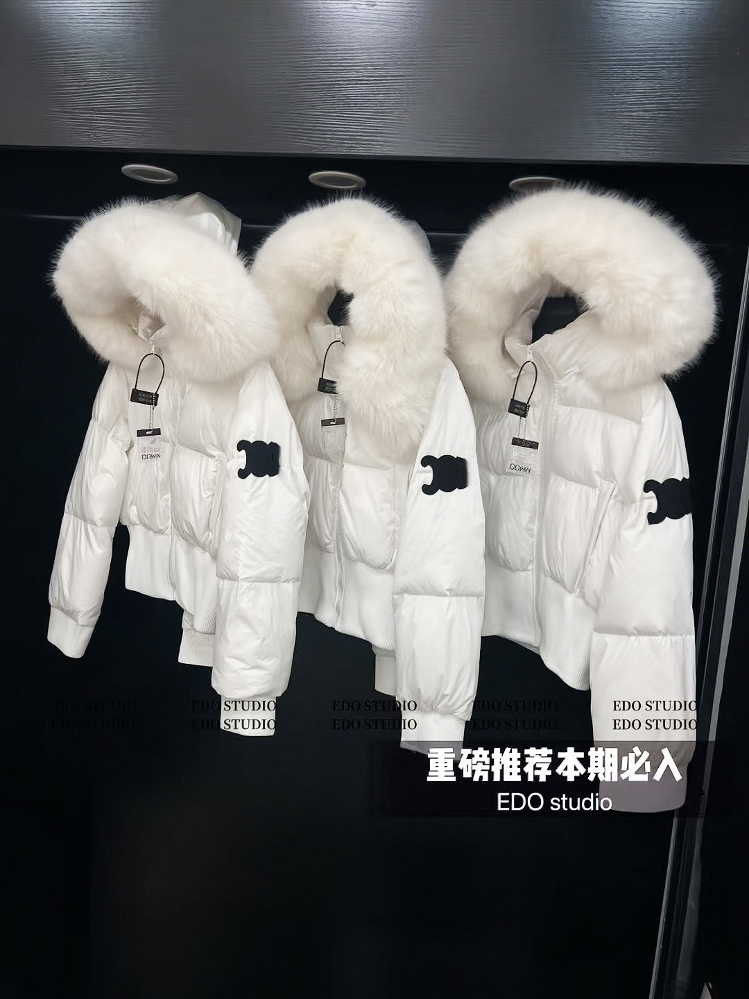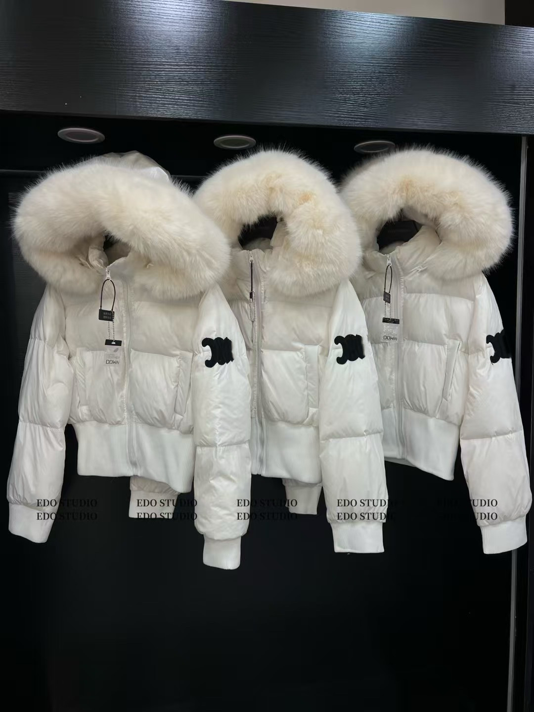 十三行2025冬季 韩系洋气拼接大毛领连帽收腰显瘦收腰短羽绒服外套