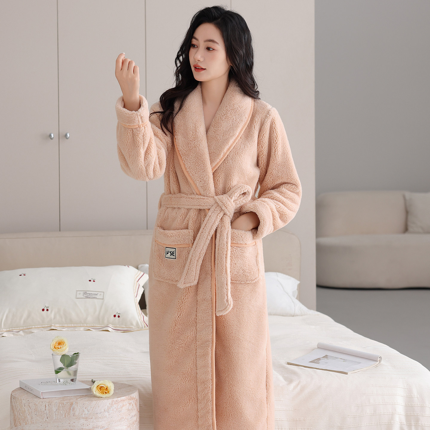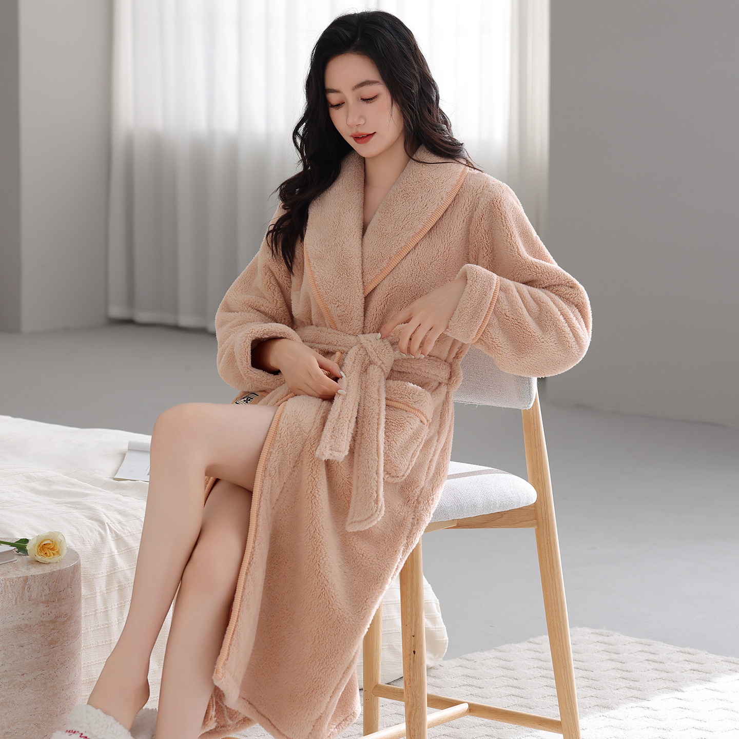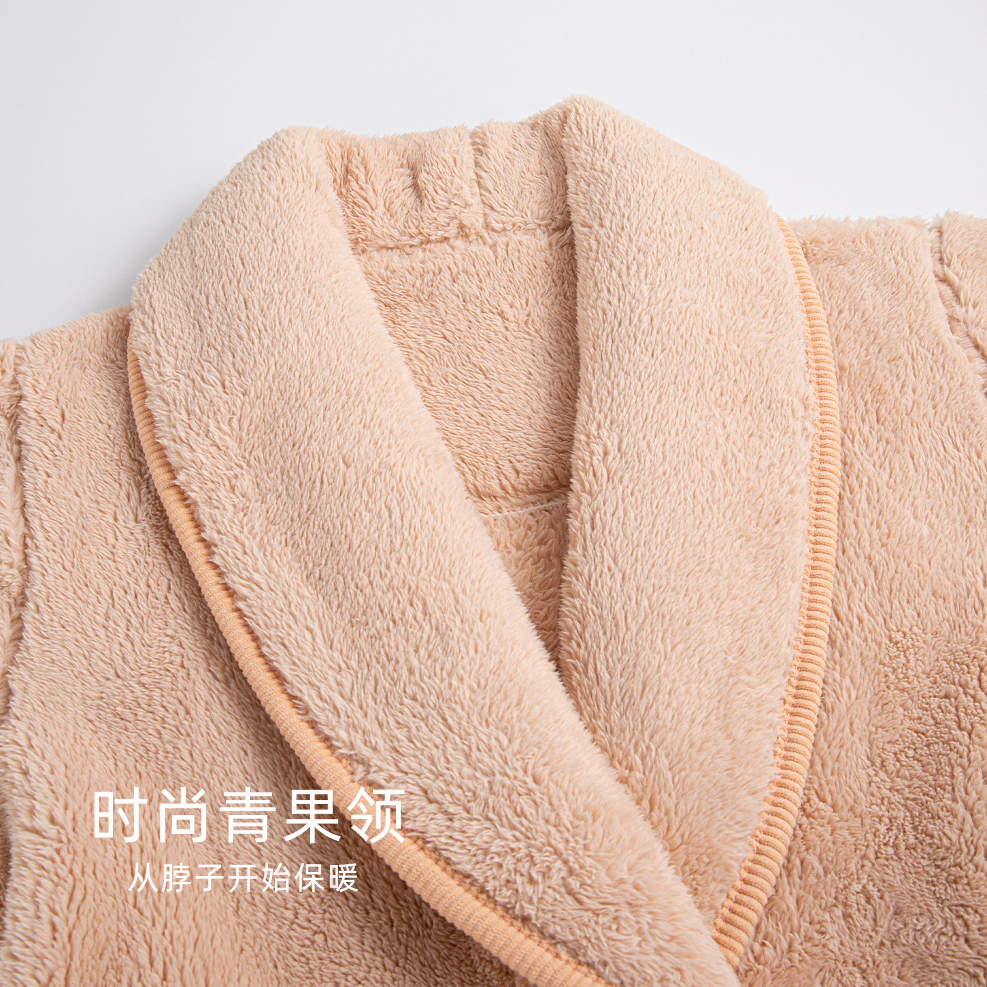 中长款 冬保暖睡衣家居服套装 睡袍毛绒浴袍加厚情侣款 三层加厚