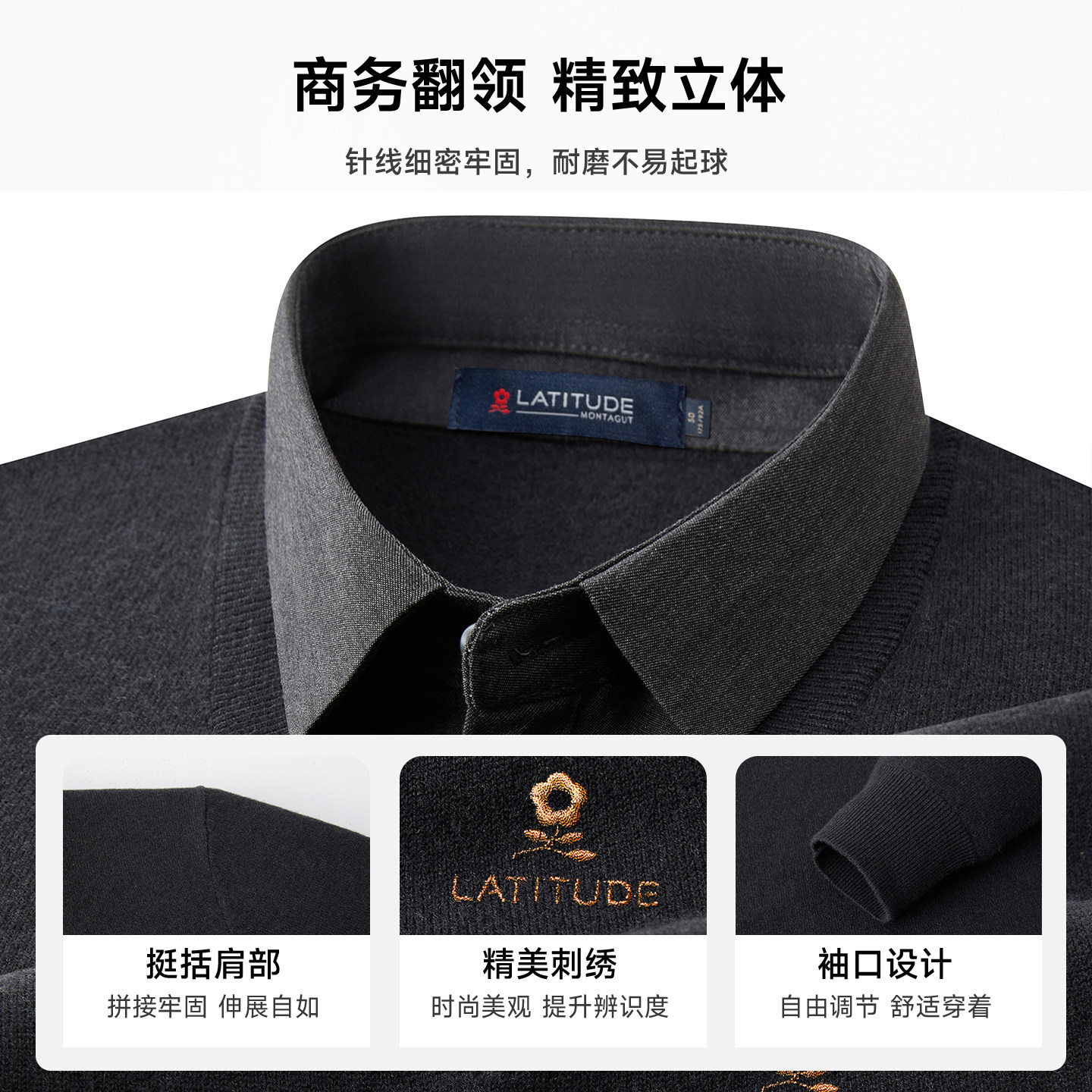 冬季 假两件纯色针织打底衫 梦特娇男士 轻奢品牌毛衣Z 100%羊毛衫