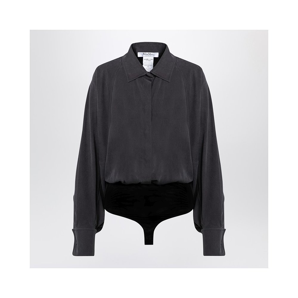 麦斯玛拉 MaxMara 女士 body 1h可退 煤炭黑灰色真丝衬衫 潮奢