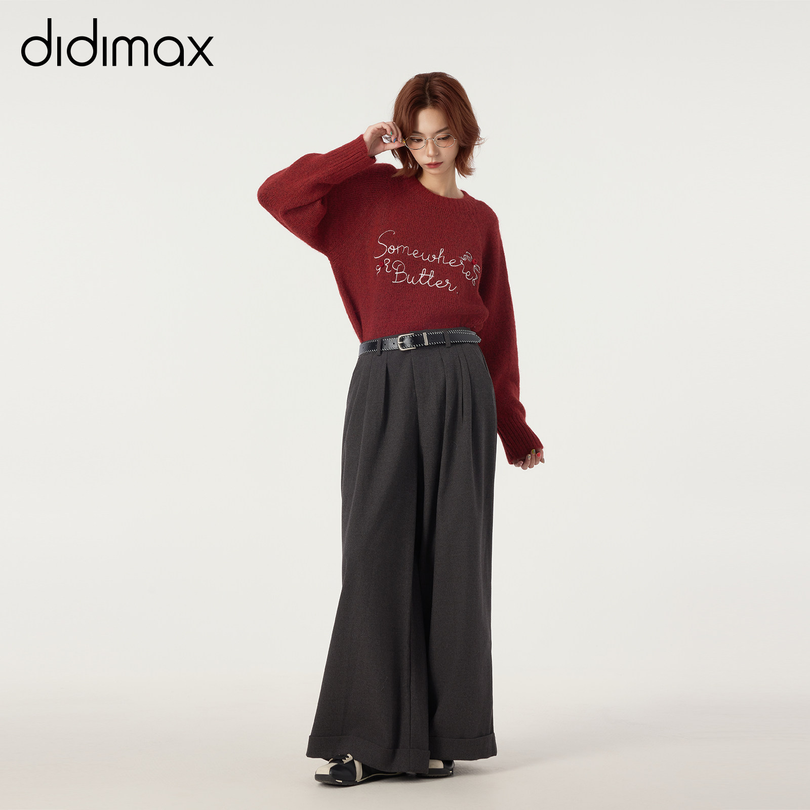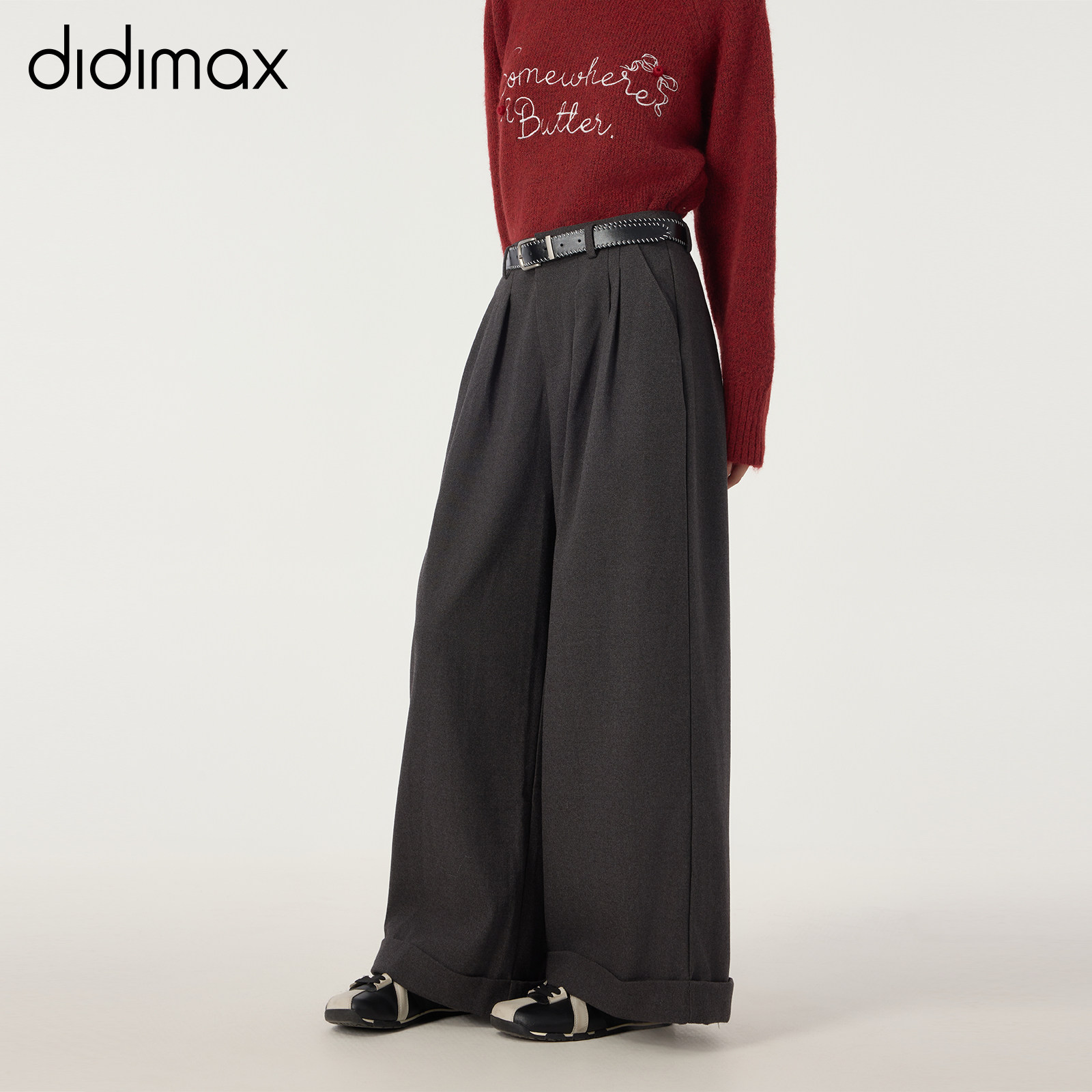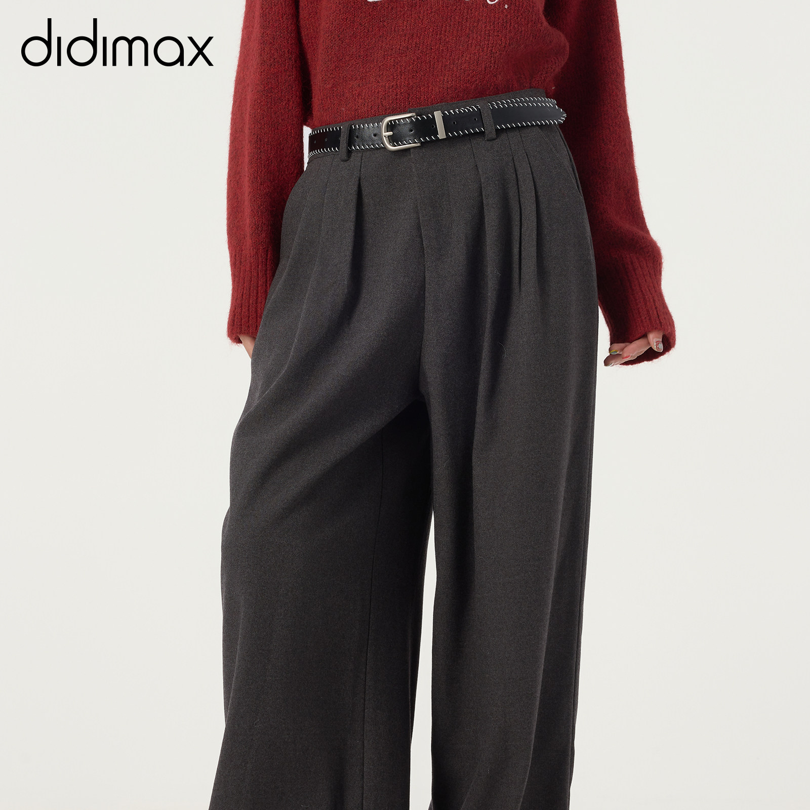 长裤 didimax冬季 西装 深灰色挽腿宽松阔腿裤 复古百搭W55920 新款