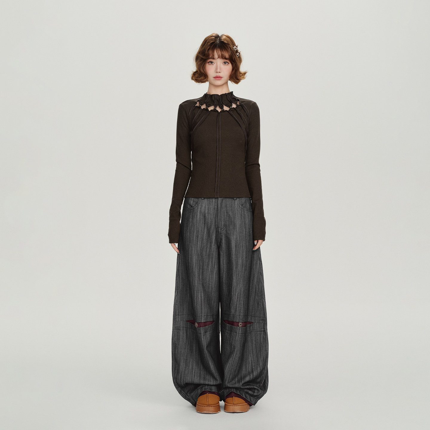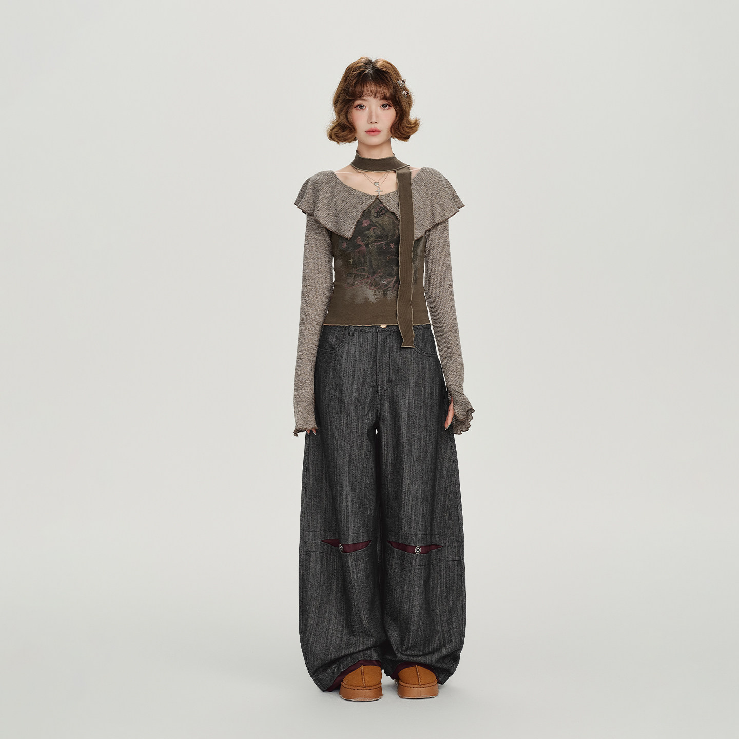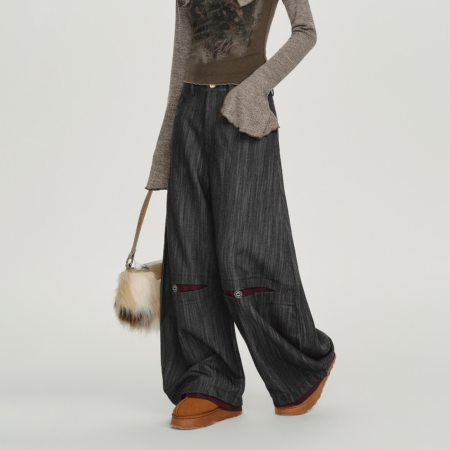 佐梦依加绒加厚休闲裤 弯刀阔腿裤
