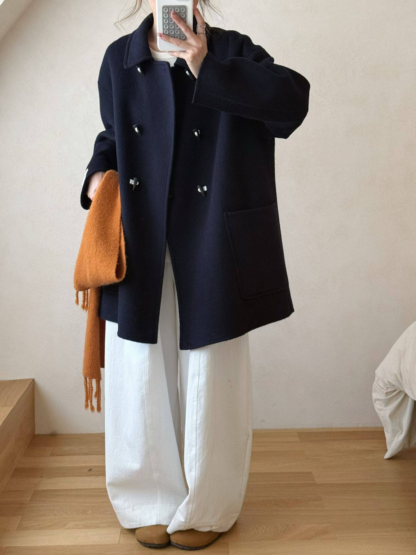 宽松显瘦羊毛外套 韩版 2025秋冬东大门Egg新款 双面羊绒大衣女短款