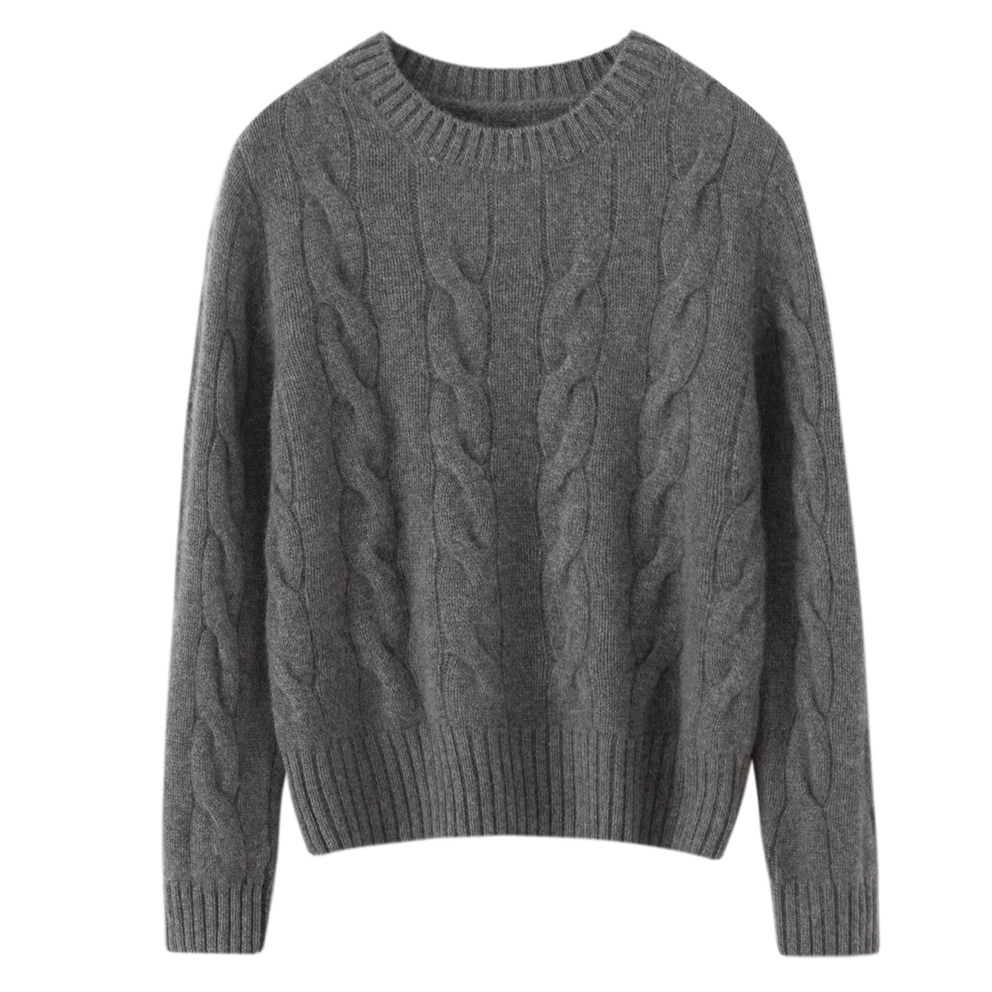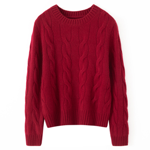 高级感上衣宽松打底针织衫 圆领100%纯山羊绒衫 女高端毛衣秋冬新款