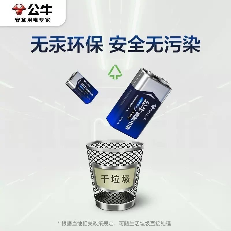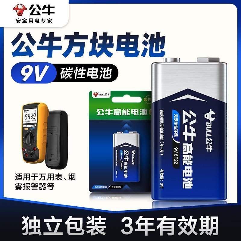 公牛9V电池方块电池6F22方形叠层遥控器9伏万用表九伏无线话筒9号