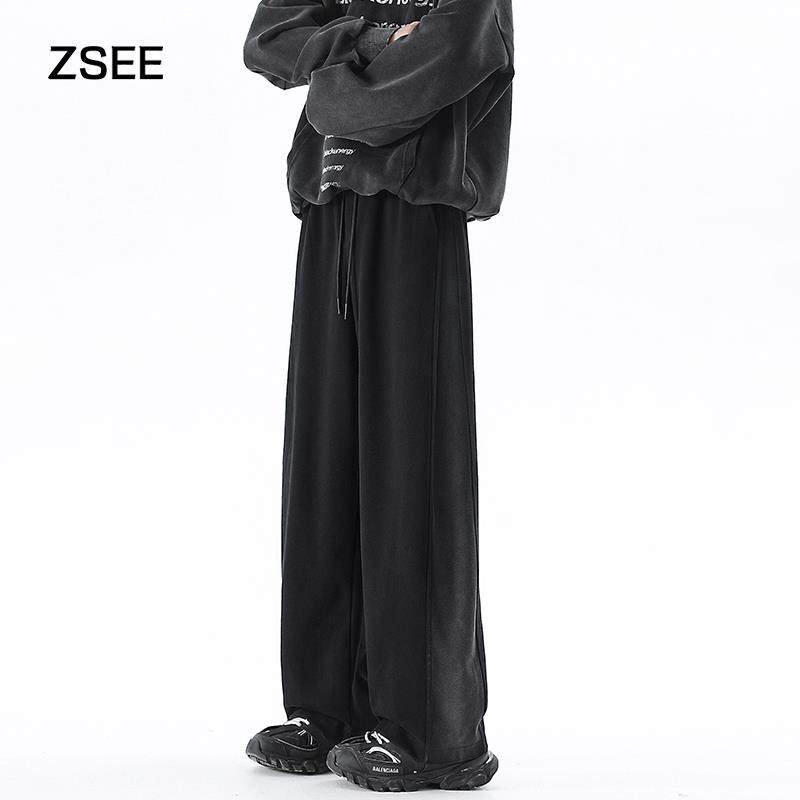 宽松垂感卫裤 重磅渐变水洗磨白黑色休闲裤 长 男春秋季 ZSEE弯刀裤