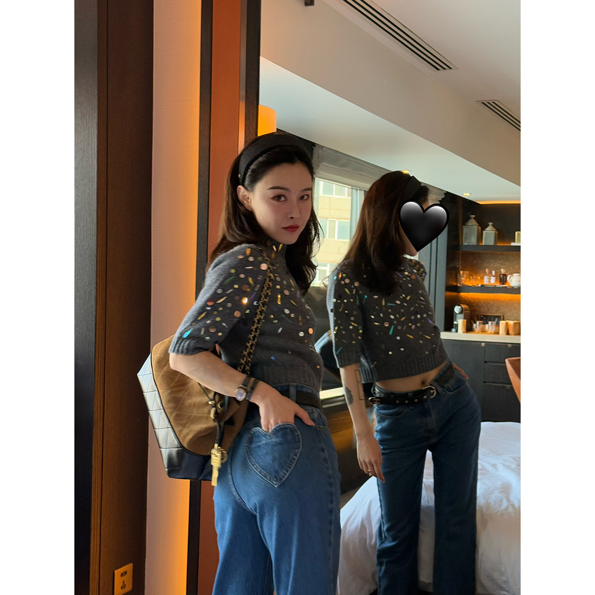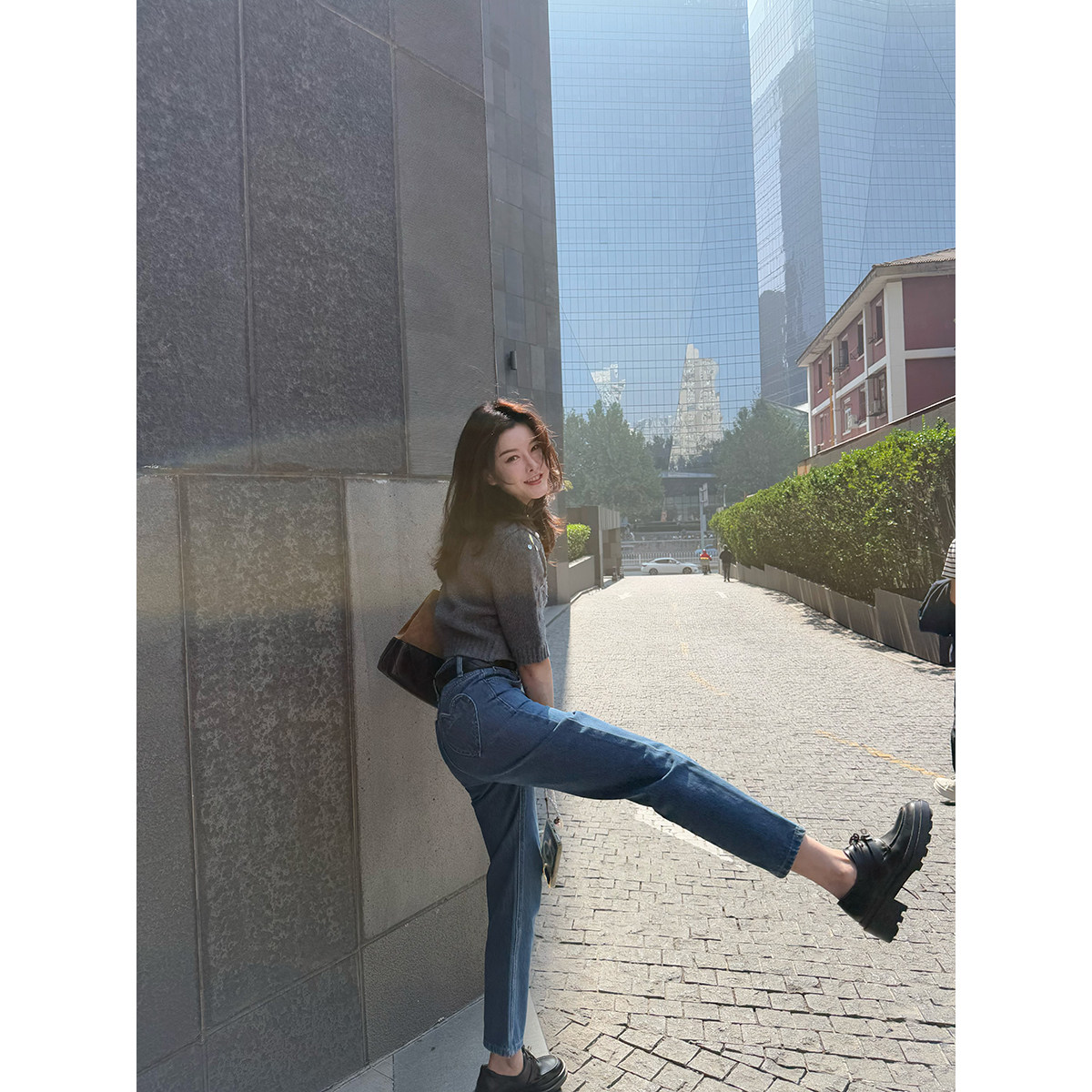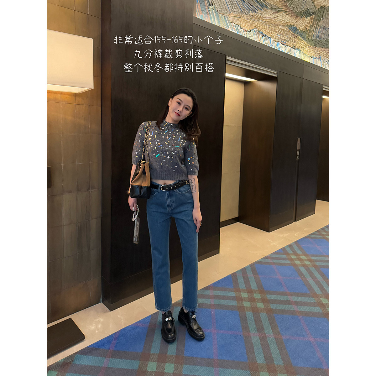 DUO智仙生 小个子专属九分直筒爱心牛仔裤