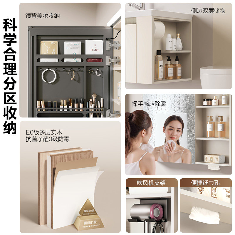 箭牌卫浴陶瓷一体盆侧收纳洗漱洗手盆浴室柜组合 全新升级3.0