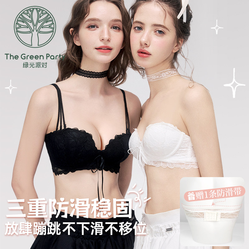 白色蕾丝抹胸内衣肩带可拆卸小胸聚拢不空杯文胸罩TheGreenParty