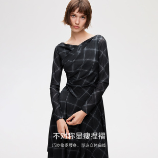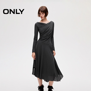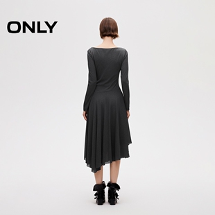 连衣裙女 不规则下摆优雅裙子交叉垂坠荡领中长款 ONLY2026春季 新款