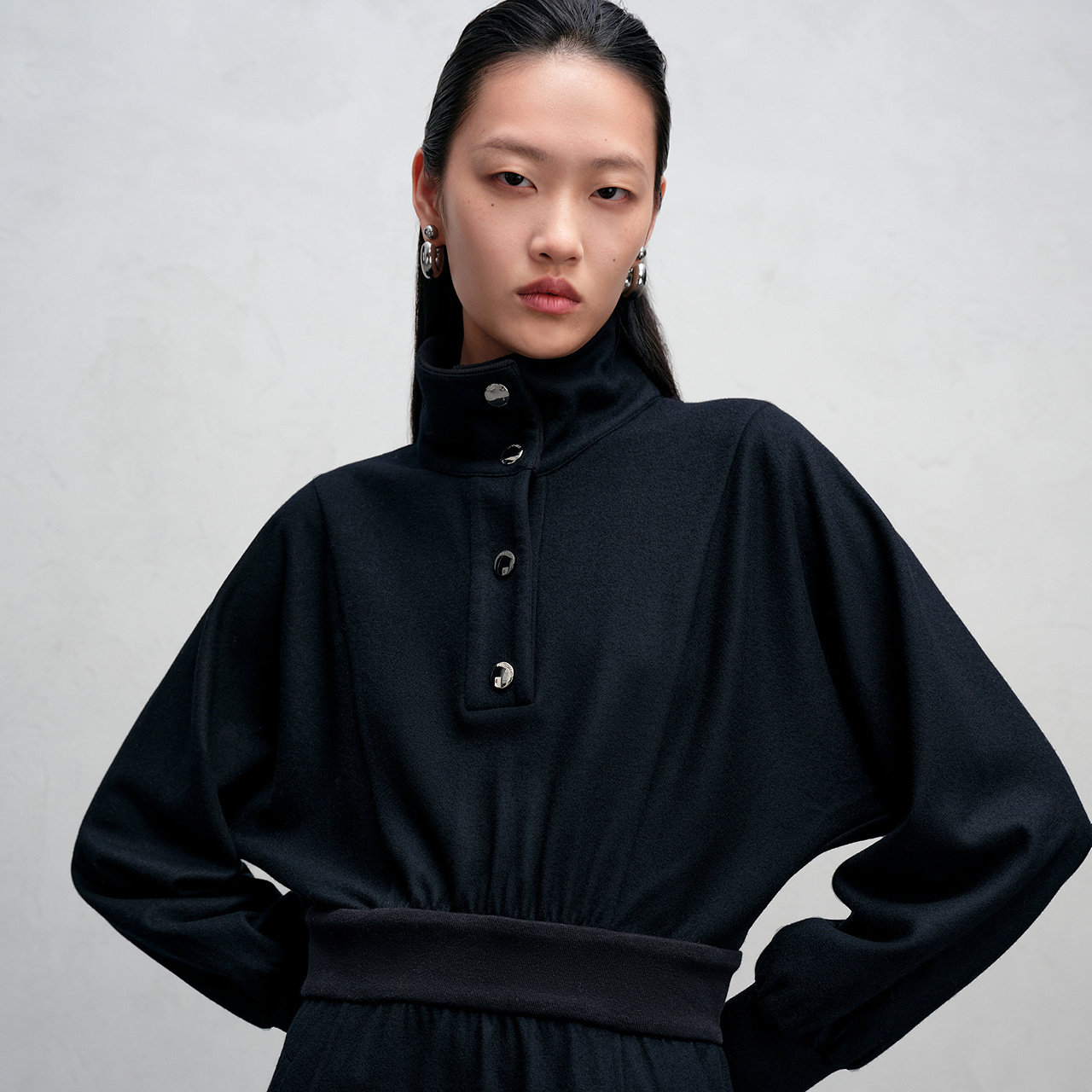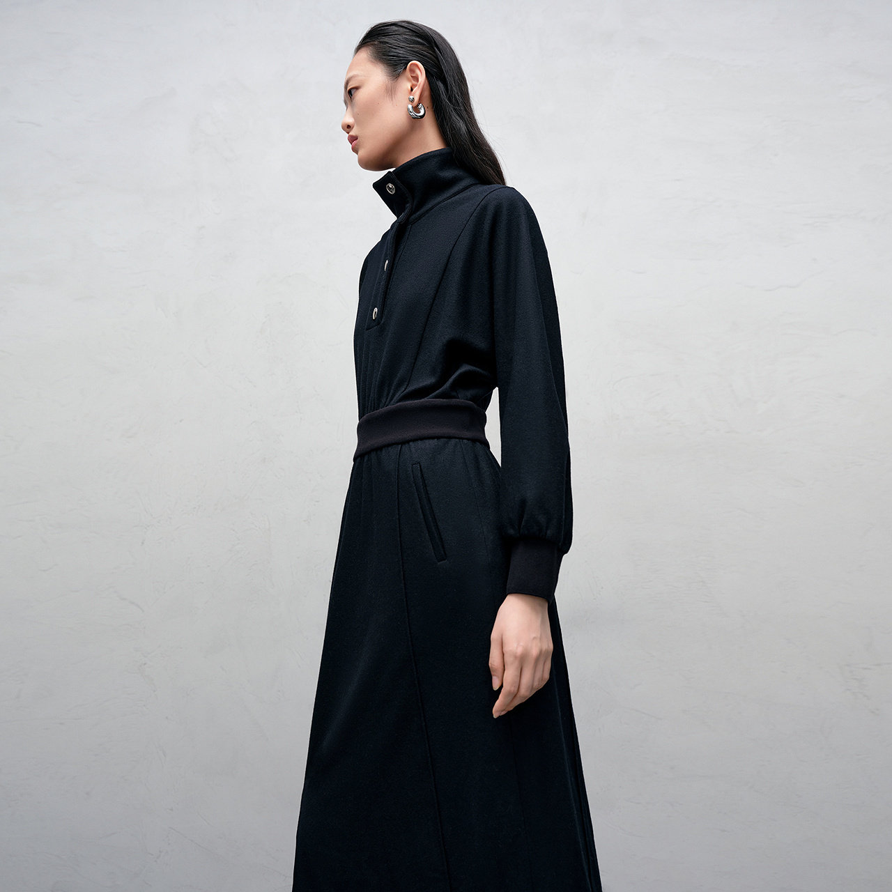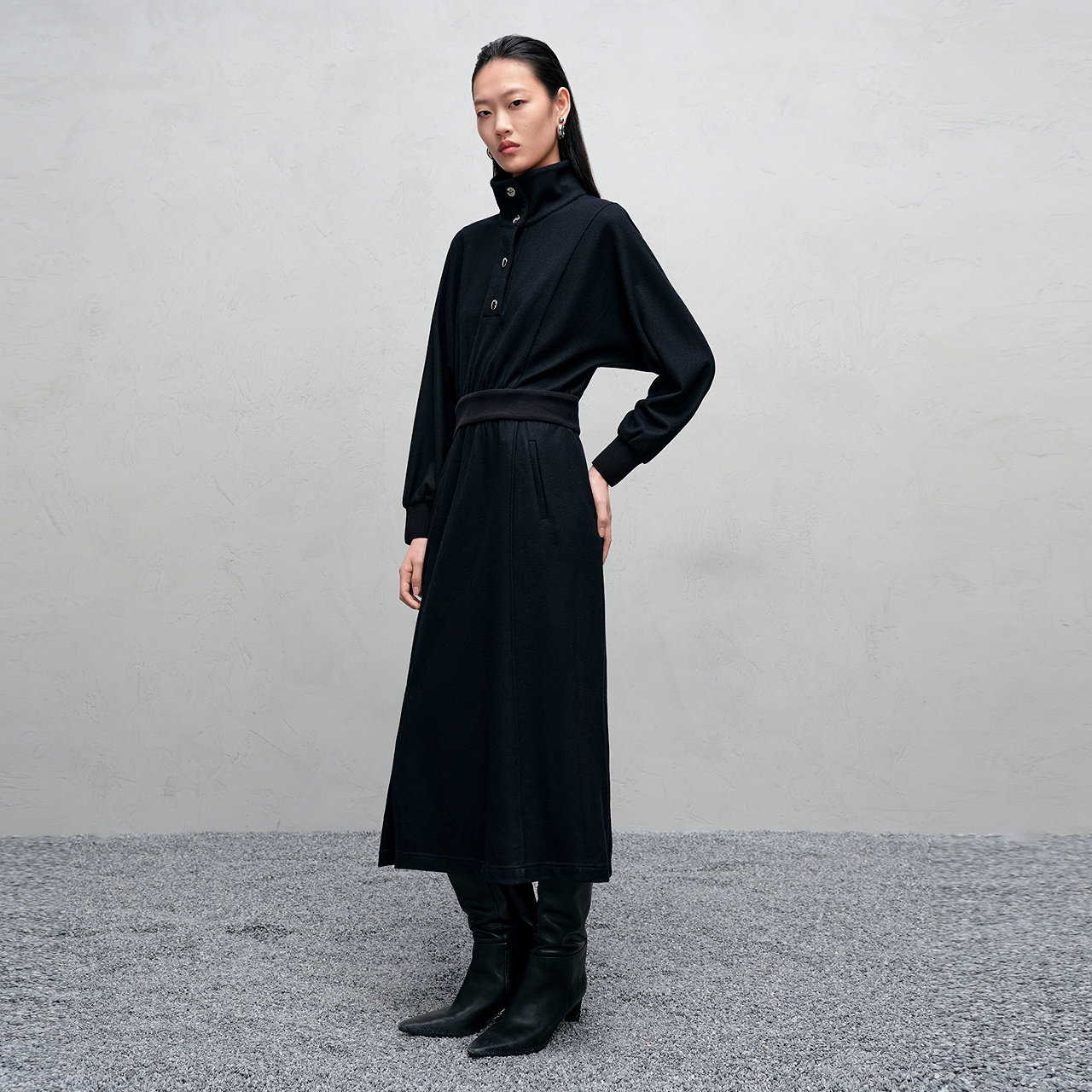 IMM尹默冬美丽诺羊毛休闲通勤风毛织翻领收腰连衣裙女
