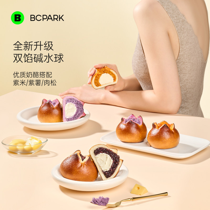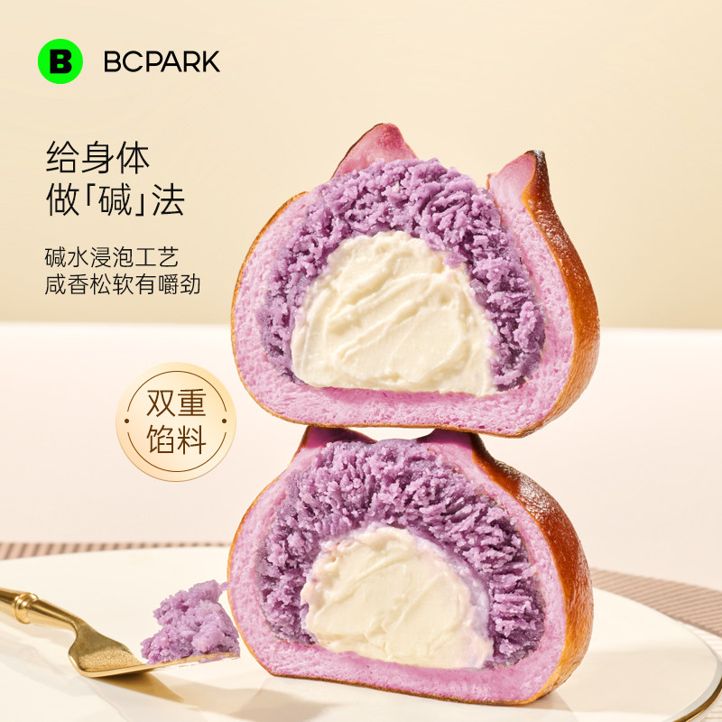 双馅肉松紫薯乳酪碱水球全麦面包夹心欧包无蔗糖营养早餐整箱健康