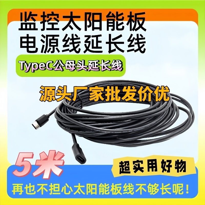 太阳能摄像头电源延长线监控太阳能板type C电源延长线TC接口