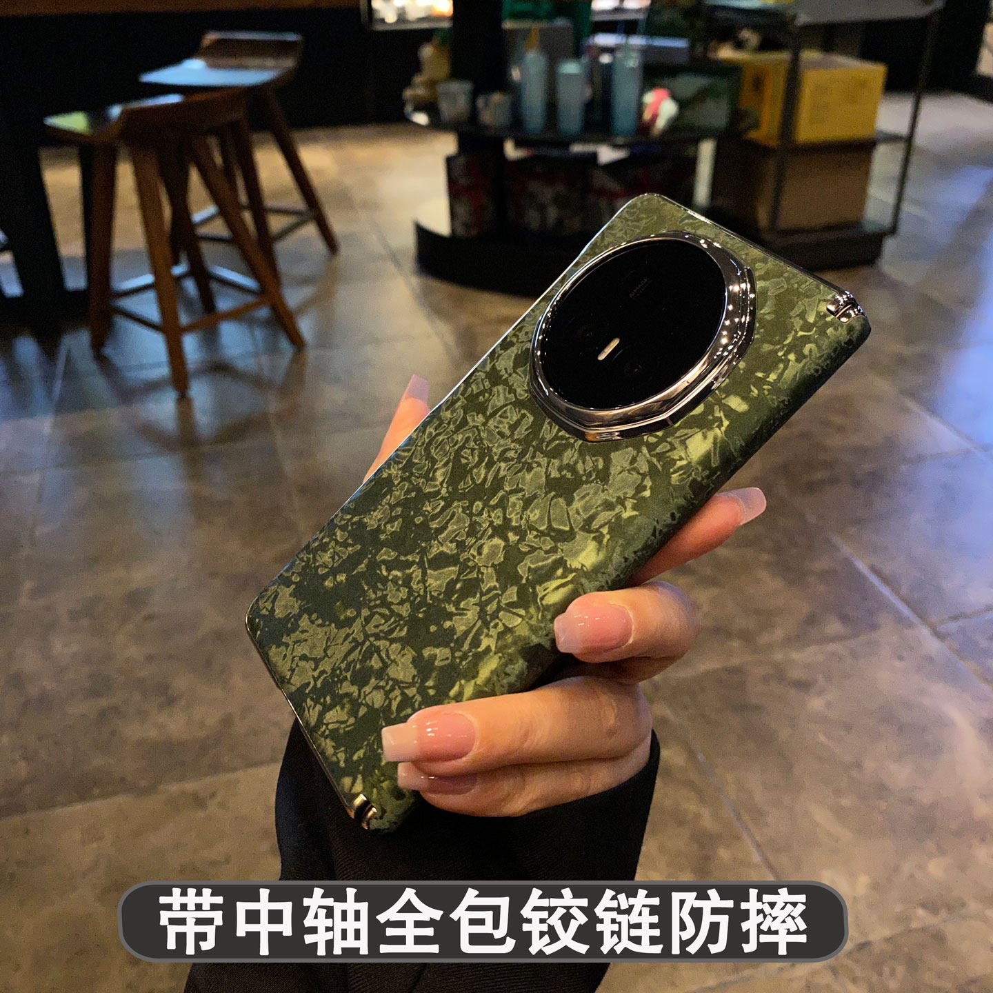 适用荣耀magicv5手机壳新款 丝绒硬壳电镀镜框防摔华为MagicVs3折叠屏带中轴全包超薄V3商务honorvs2保护套V2