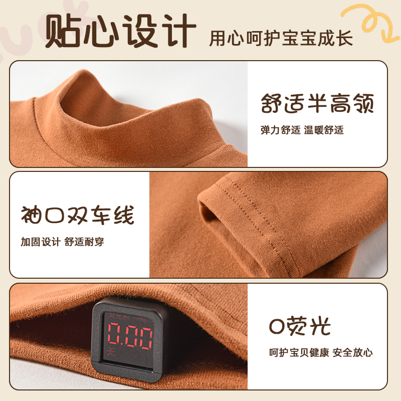男T恤内搭款 儿童打底衫 秋冬纯棉磨毛上衣秋衣男童女童半高领长袖