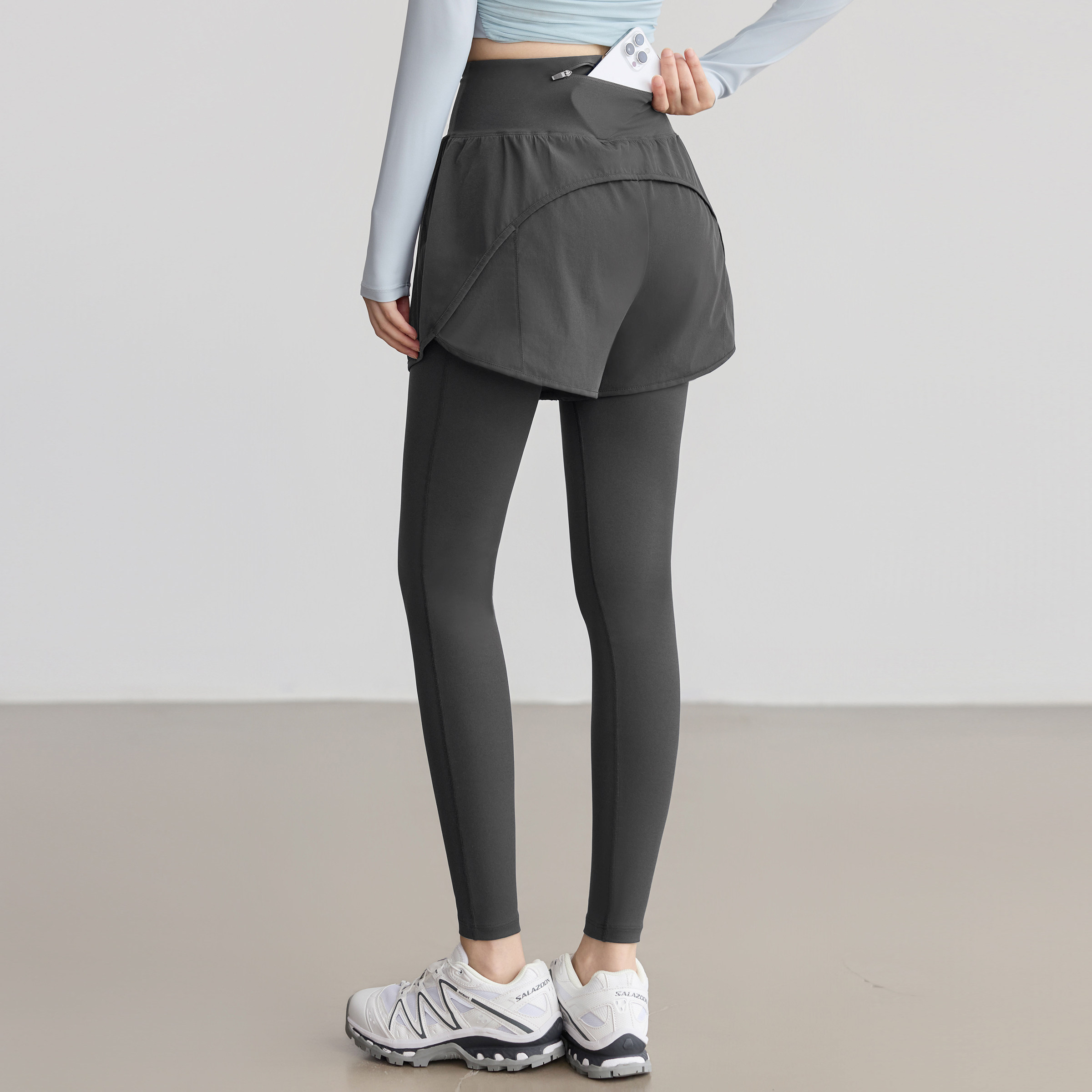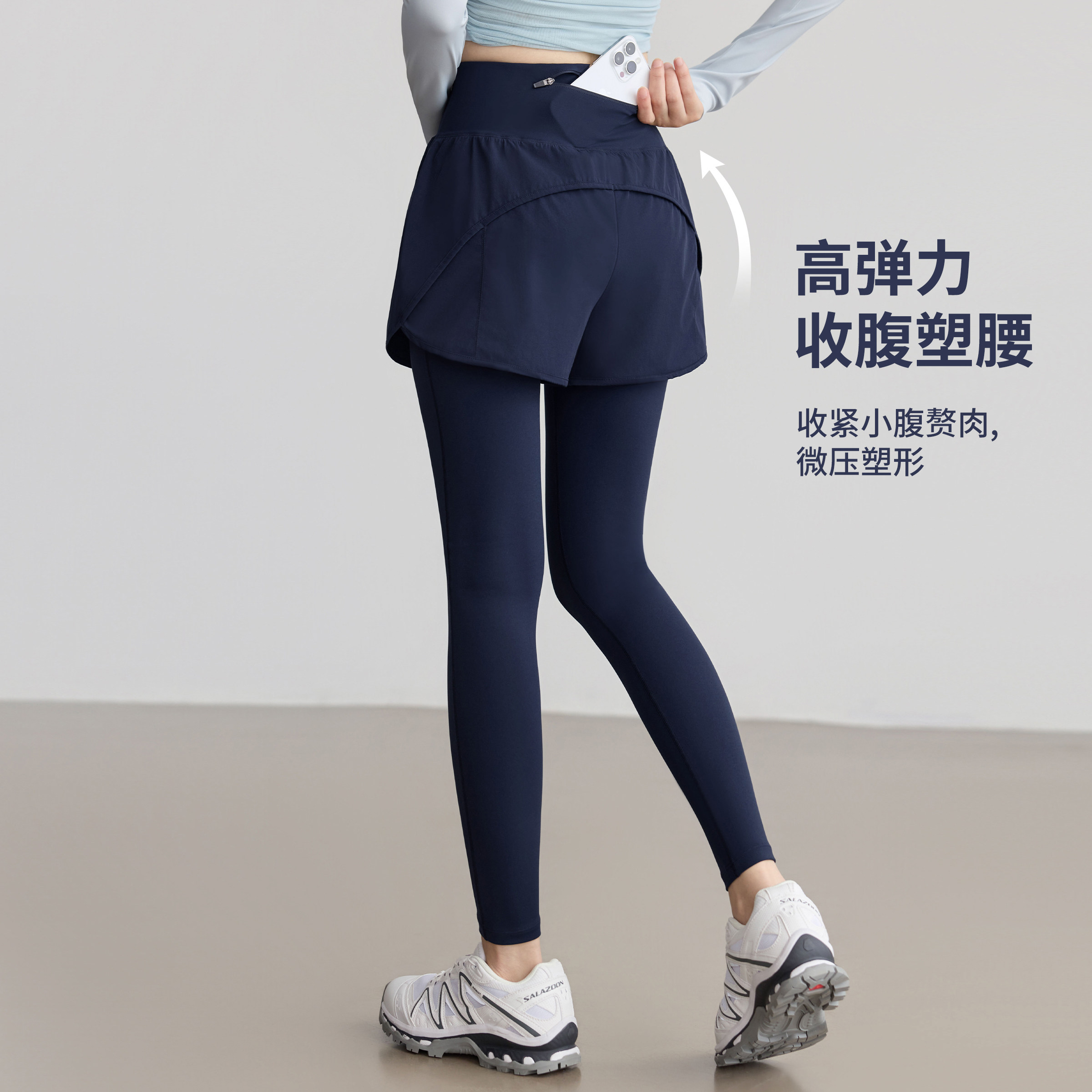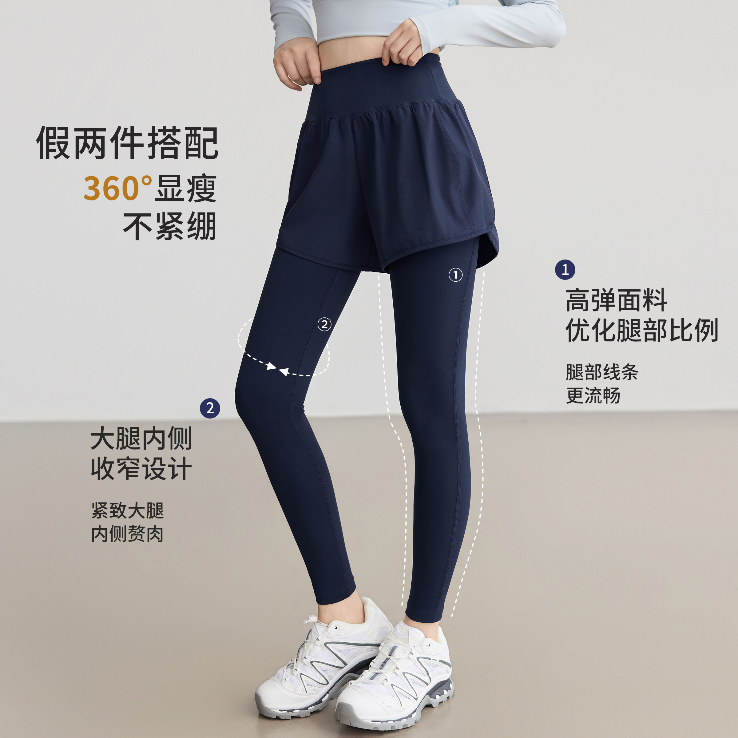 普拉提运动健身裤 裙高腰提臀紧身防走光喇叭裤 女假两件裤 瑜伽裤