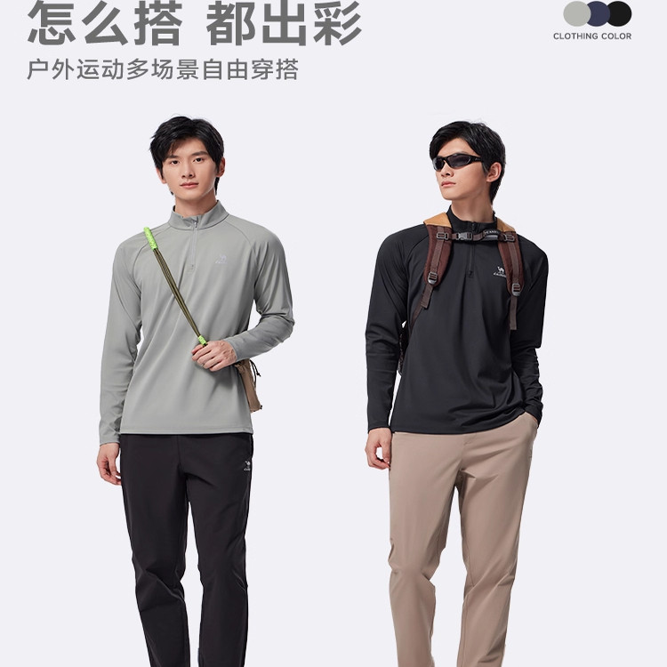 T恤训练服跑步健身上衣 立领长袖 骆驼运动速干衣男2025秋季 新款