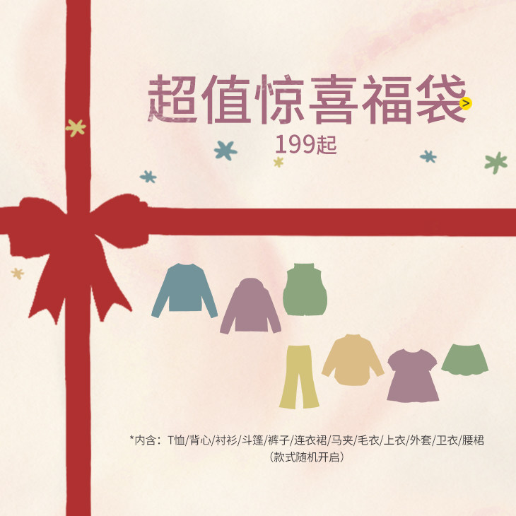 不与店铺其他优惠同享 不支持退换 起男女童装 超值福袋199元