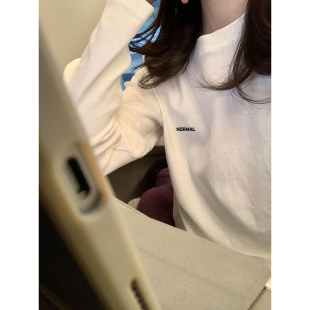 长袖 纯棉长袖 胖mm薄款 女宽松大码 上衣 t恤女初中生白色内搭打底衫