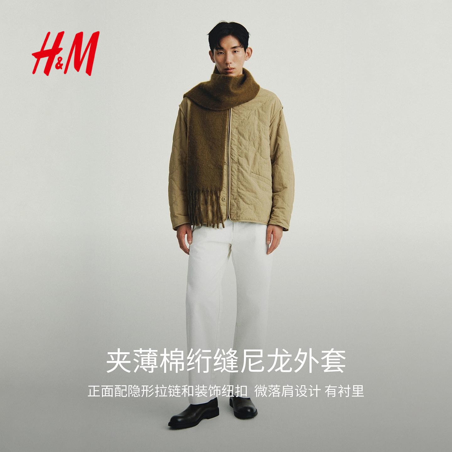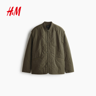 绗缝尼龙休闲宽松户外外套1300942 冬装 HM男装 棉衣冬季