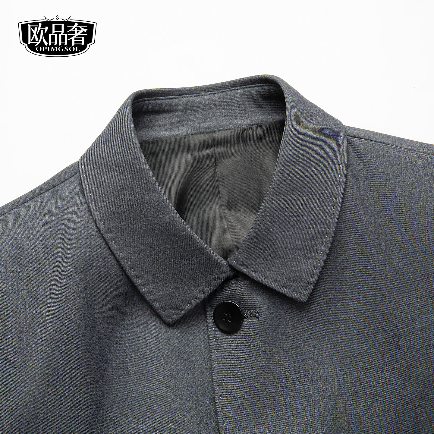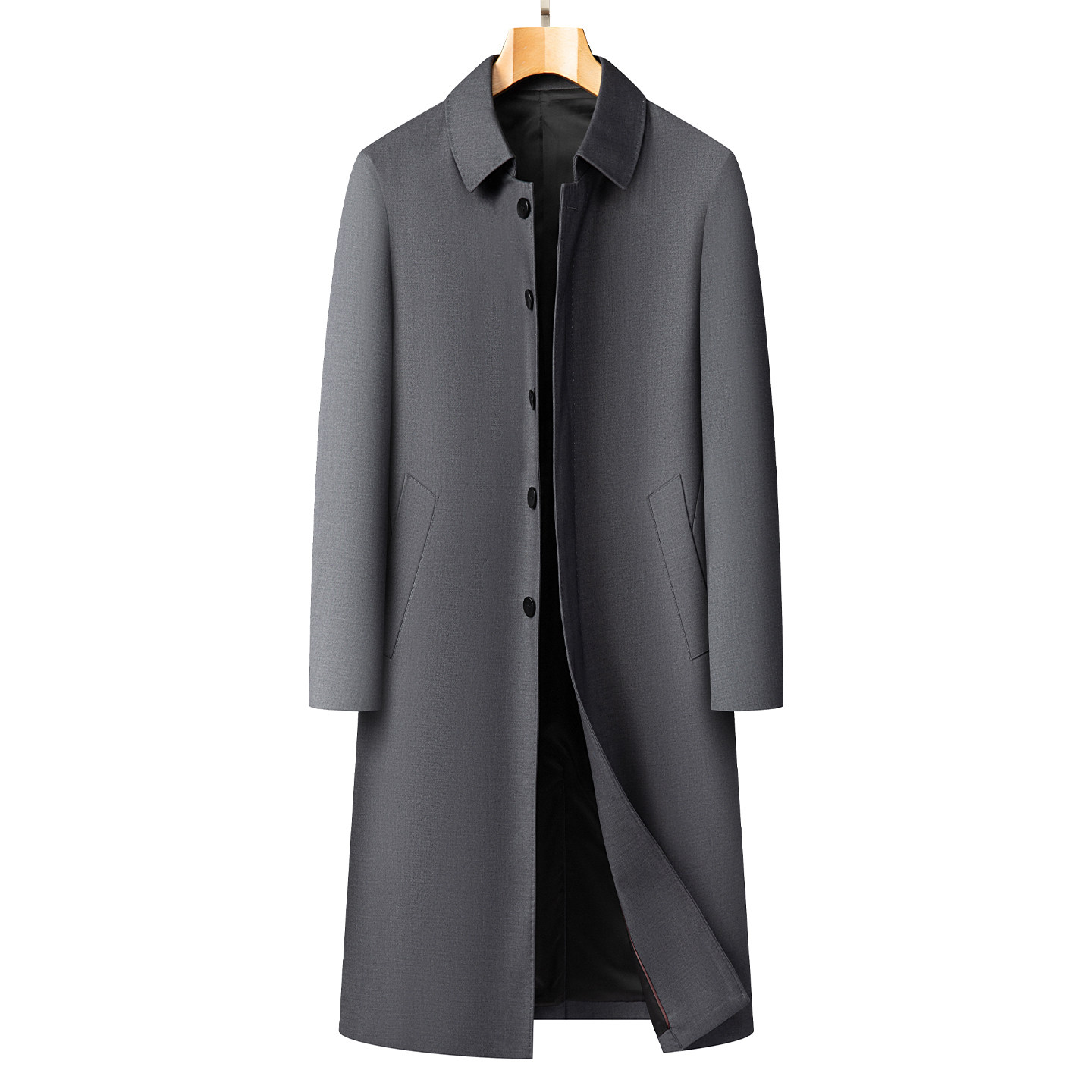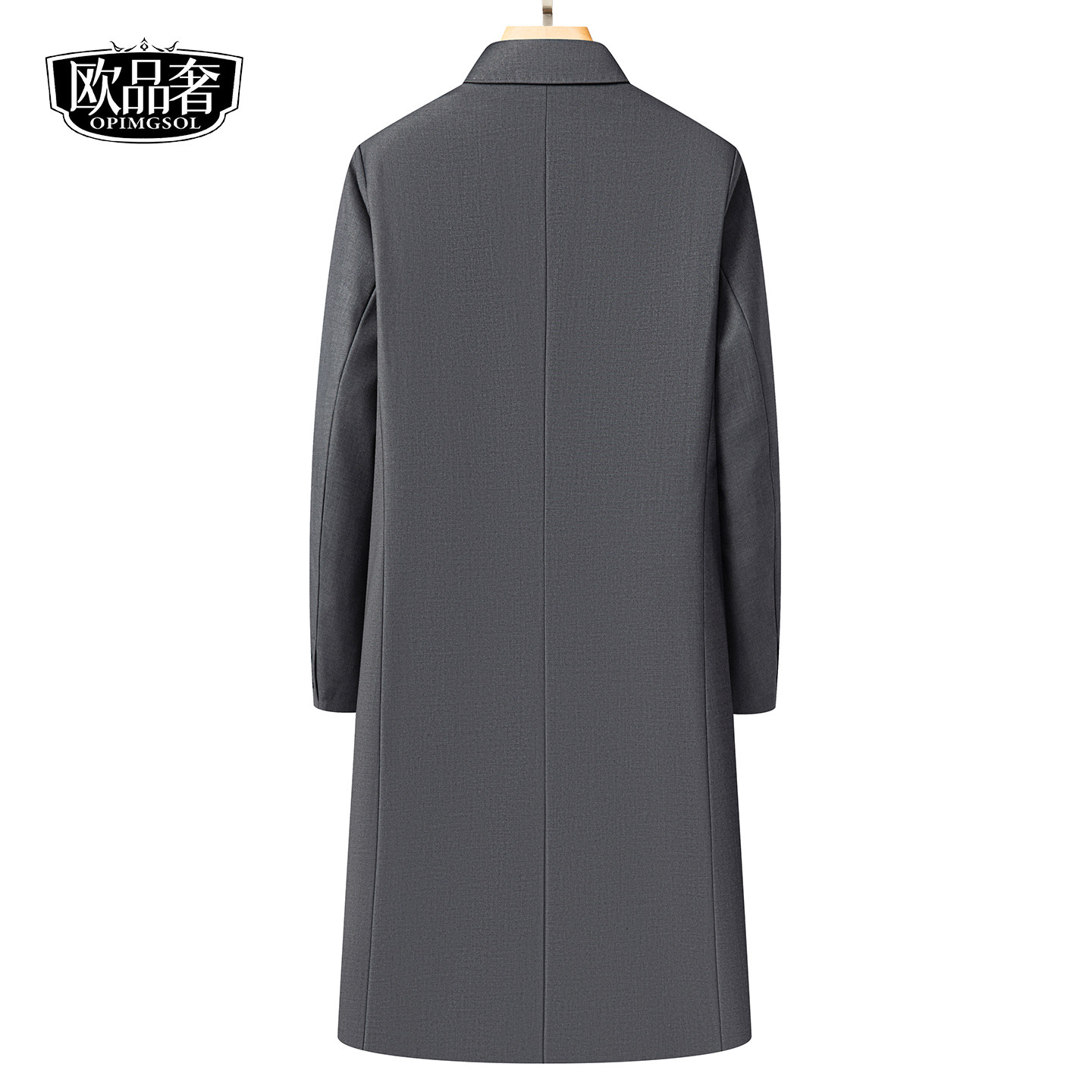 正装 过膝翻领扣子春秋新款 中年爸爸外套 中长款 商务行政大衣男士
