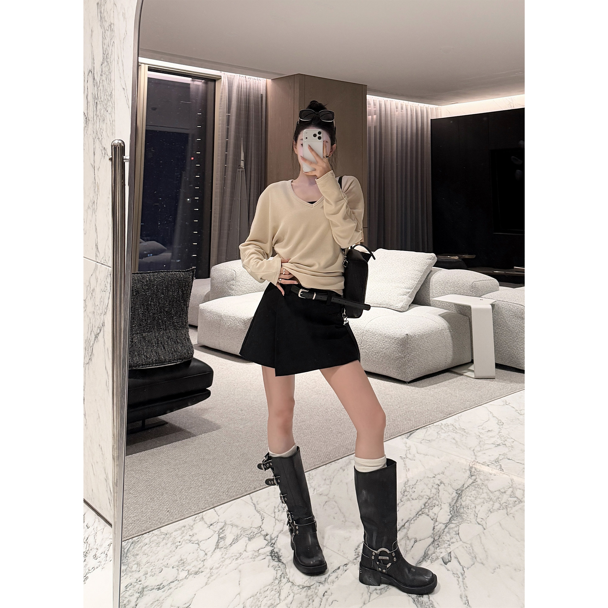 女春夏通勤休闲短裤 设计感假两件高腰裙裤 盐系出镜 PAPERLLL辛间