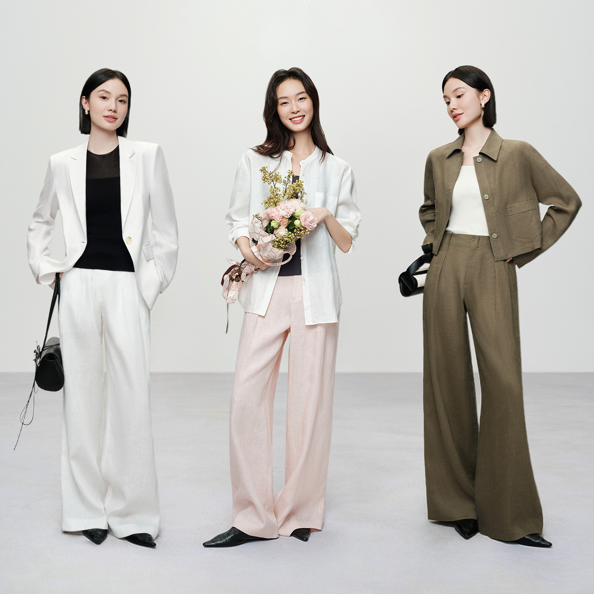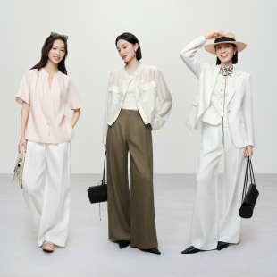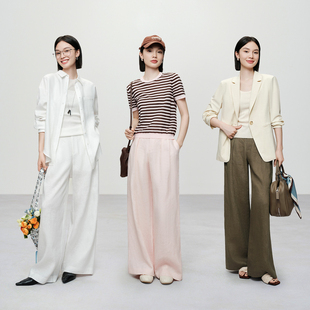 直筒阔腿 松弛通勤百搭老钱风naivee26夏新款 100%亚麻休闲裤