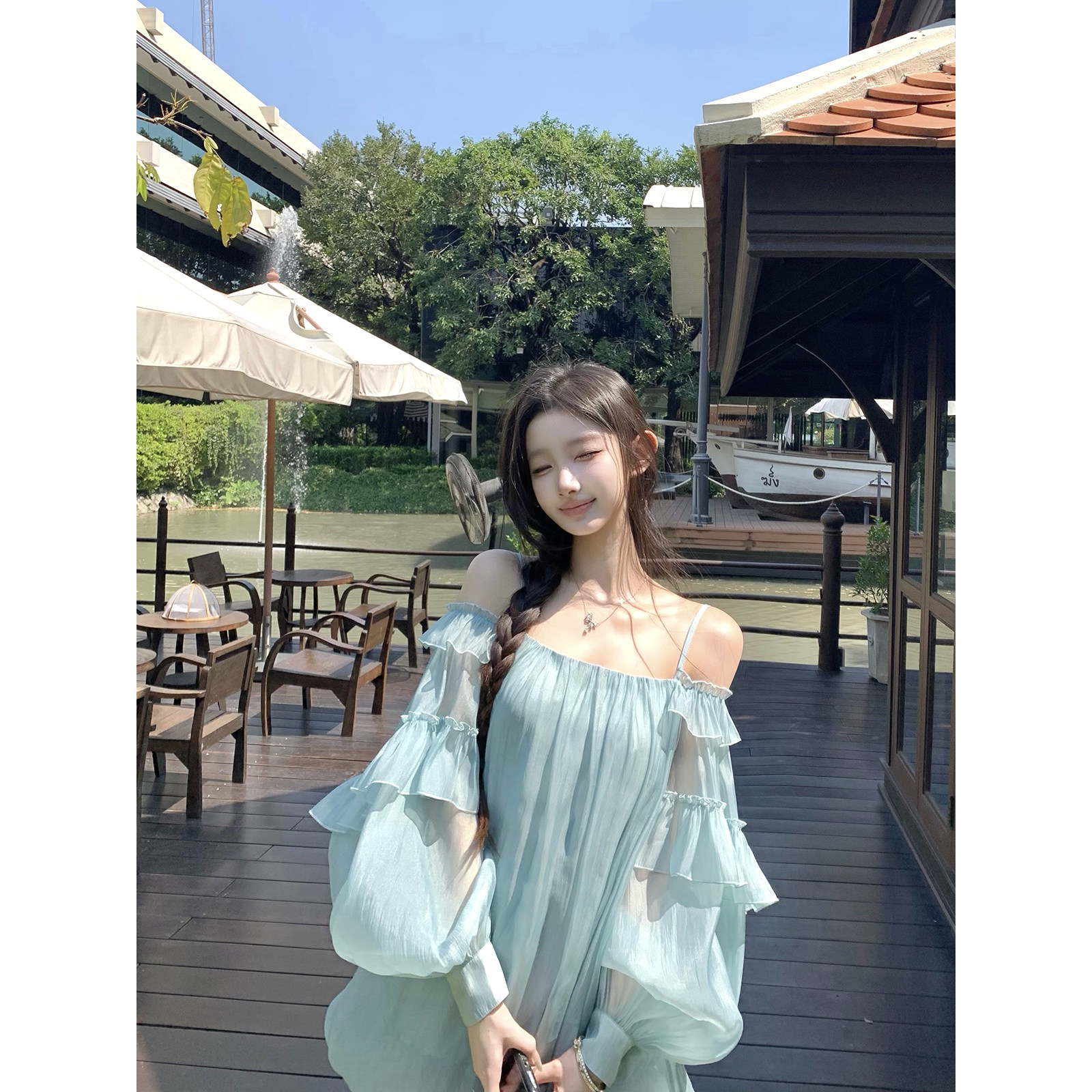 荷叶边花苞吊带裙女清冷气质连衣裙 梦野长廊 Hotdog 热狗很辣