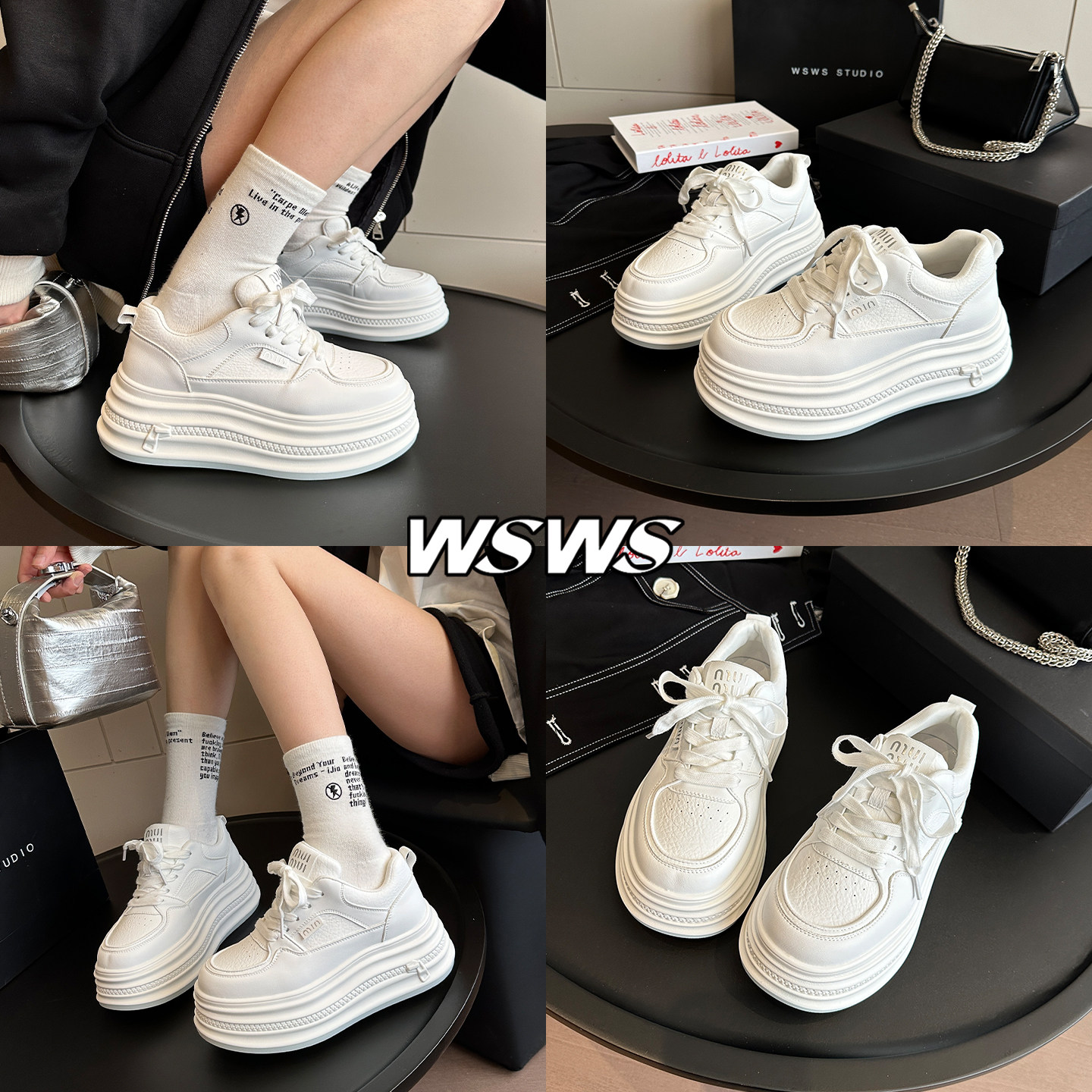小白鞋 真皮轻便增高厚底鞋 女阔腿裤 板鞋 WSWS|韩版 休闲鞋 2026新款