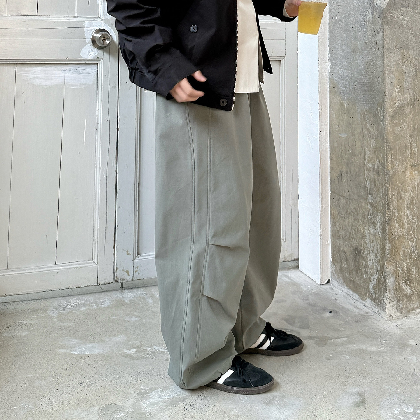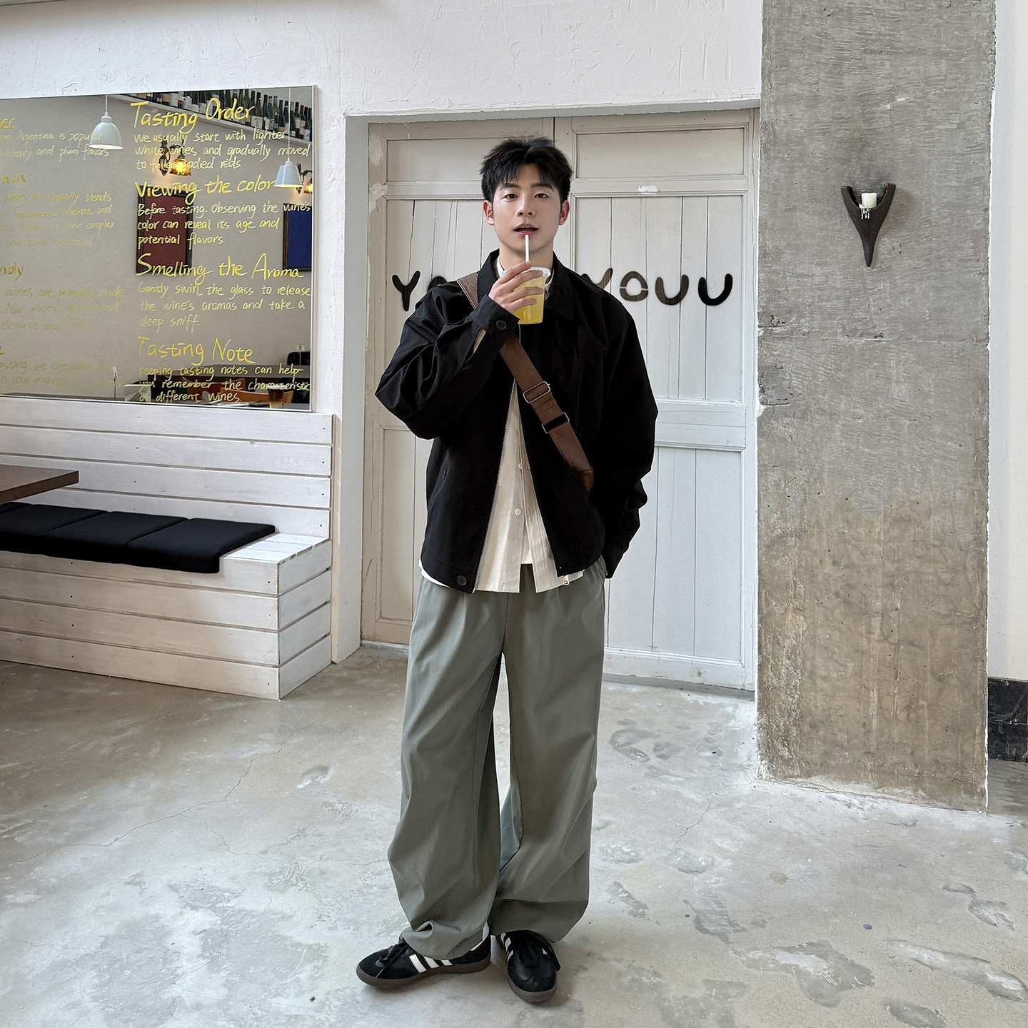 男款 休闲长裤 春季 绿色宽松打褶工装 子男 新款 复古弯刀抽绳伞兵裤