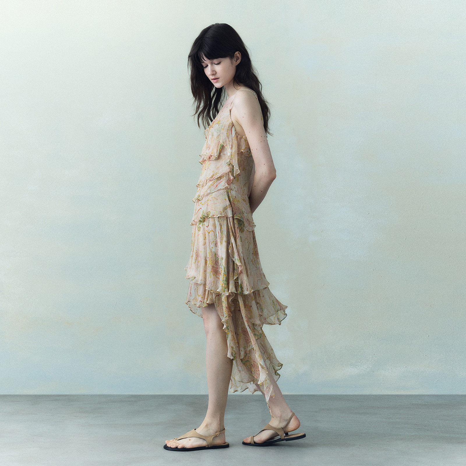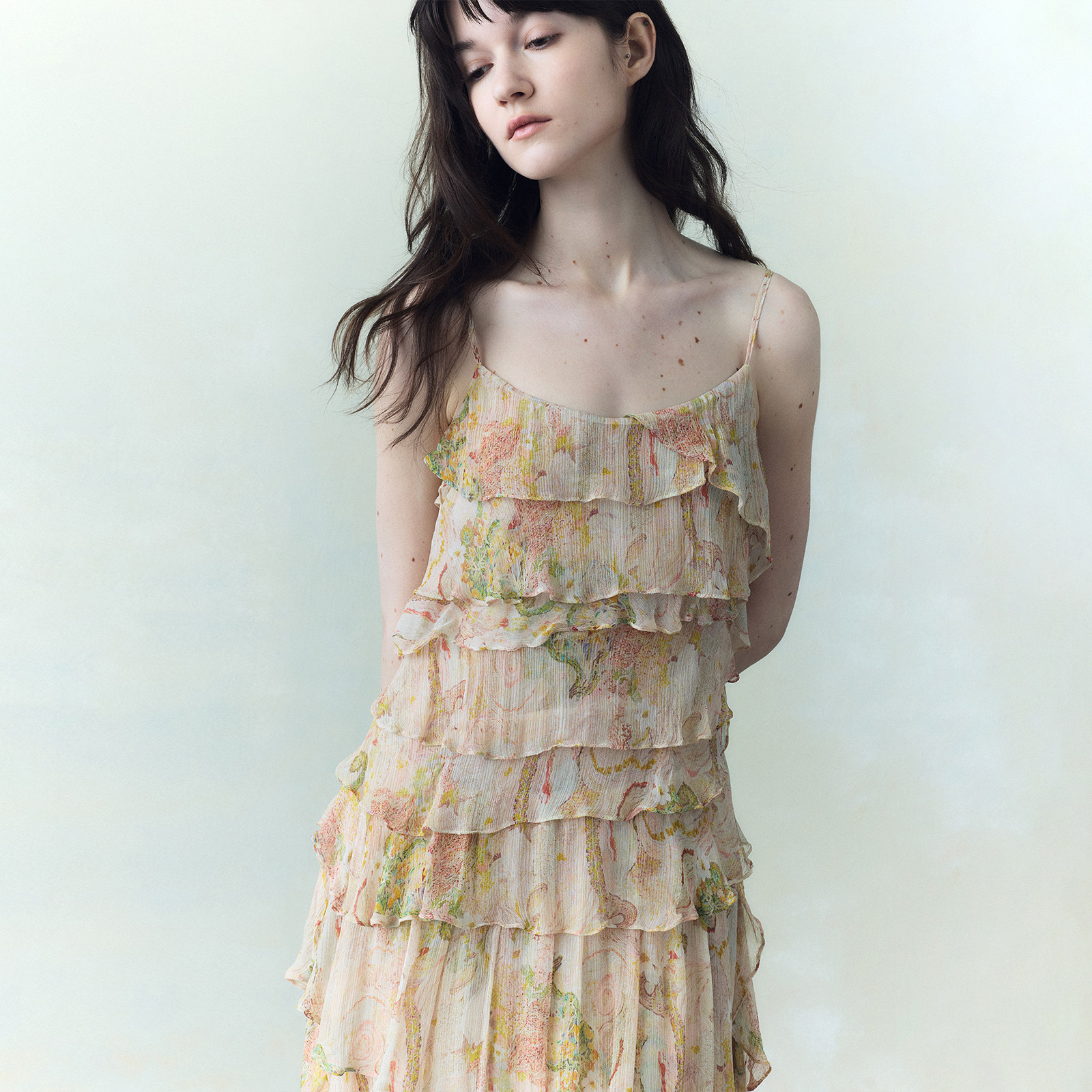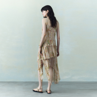 wana 仙气感长裙女 try绿野仙踪印花多层次不规则连衣裙2026春新品
