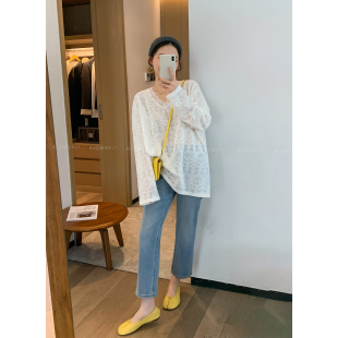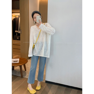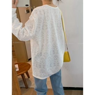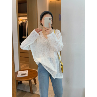 新款 爱情魔鬼鱼 女2026春季 V领蕾丝衫 宽松洋气上衣 白色高级感长袖