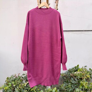 内搭打底裙慵懒风Y26 西4 59半高领针织连衣裙秋冬显瘦宽松长袖