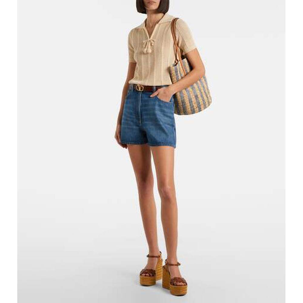 120 香港直邮valentino Bribri 女士 皮革边拉菲草编织 华伦天奴