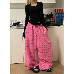 男女宽松休闲慵懒垂感直筒长裤 复古波点满印阔腿卫裤 美式 JMJ