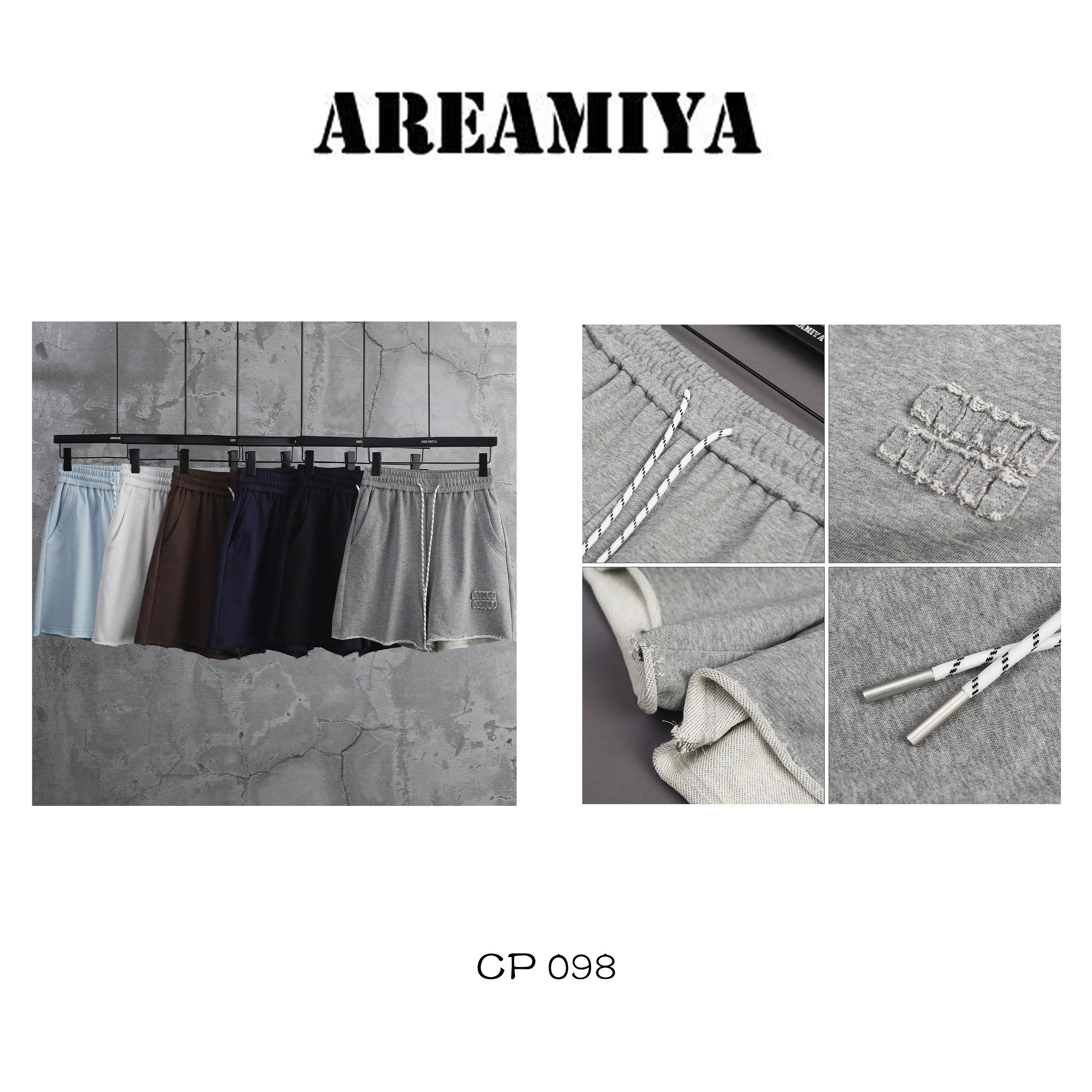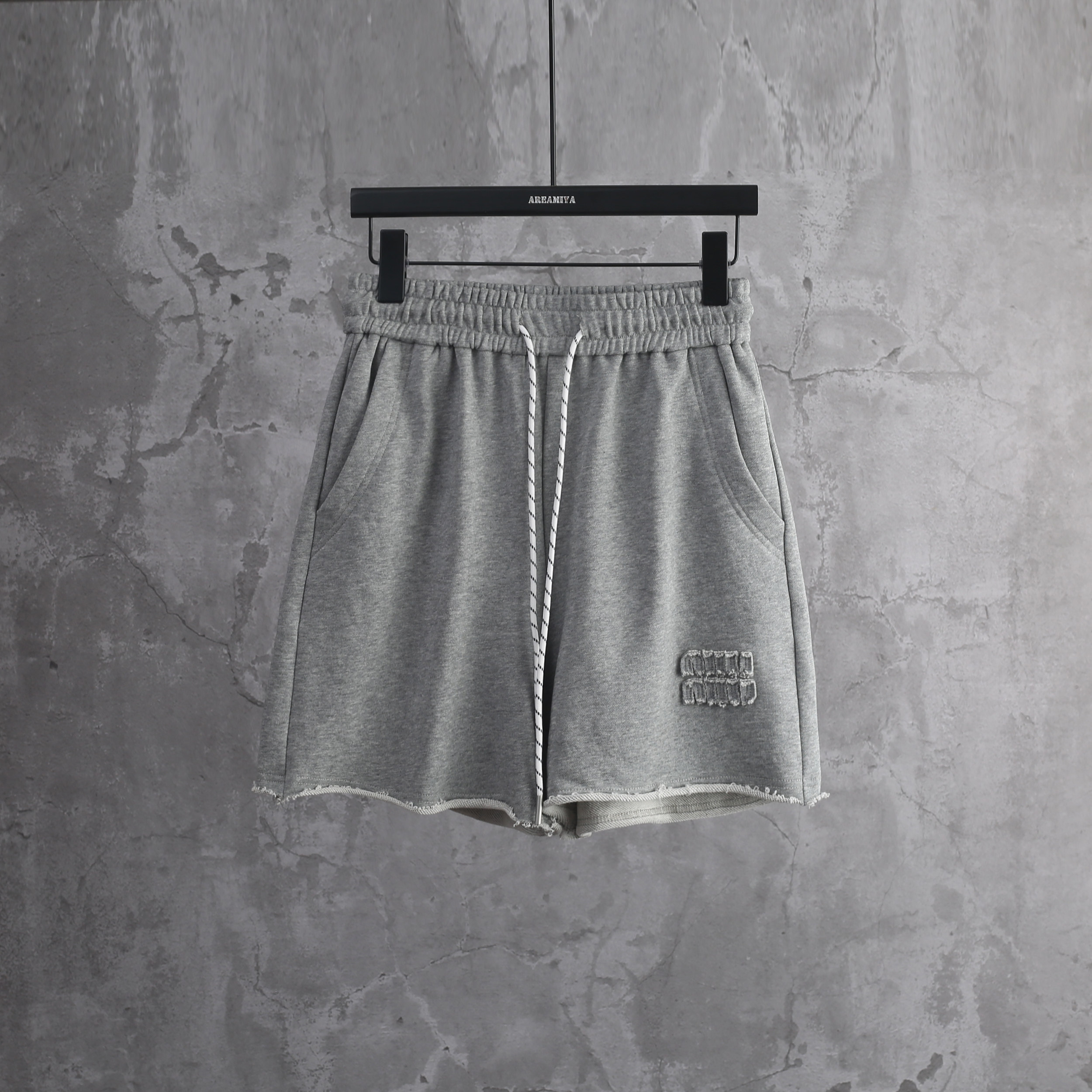 CP098 字母贴布卷边抽绳休闲短裤 松弛组合