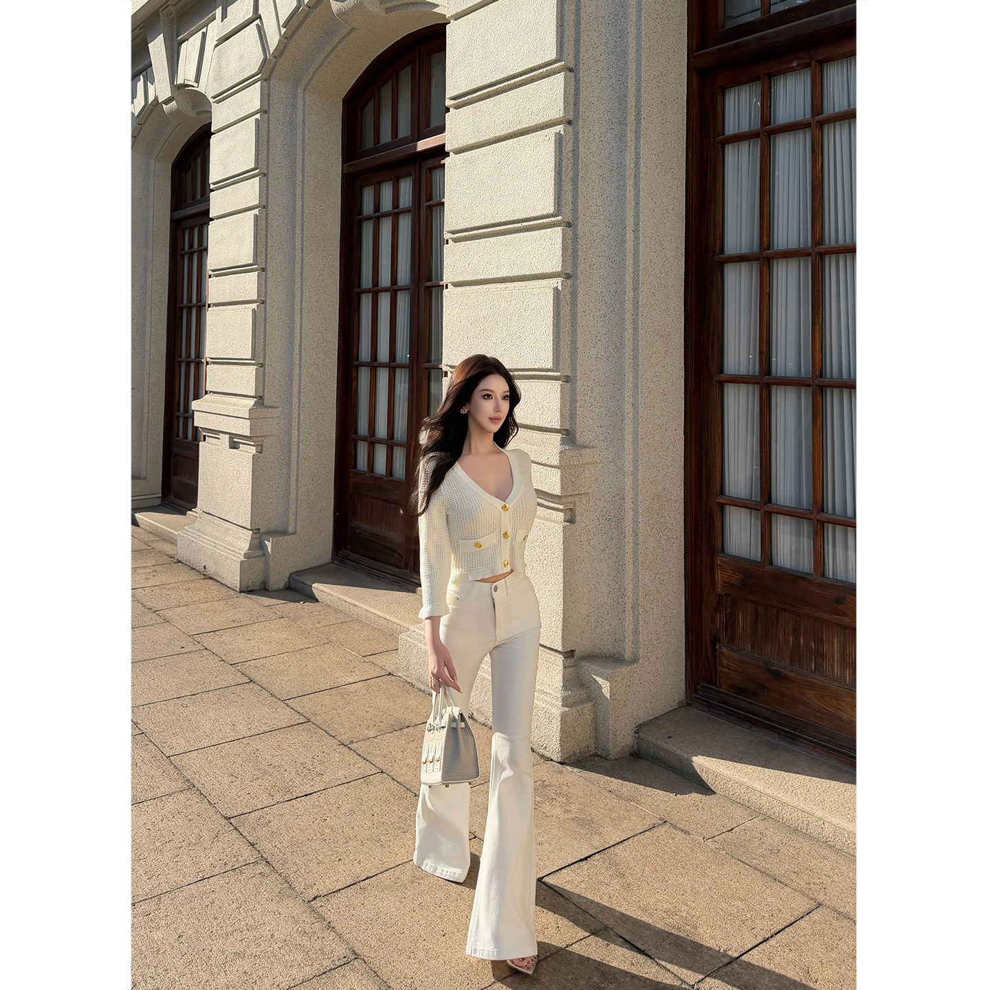 白色高腰牛仔裤 显瘦直筒休闲裤 微喇裤 长裤 阔腿裤 MIMIWU新店