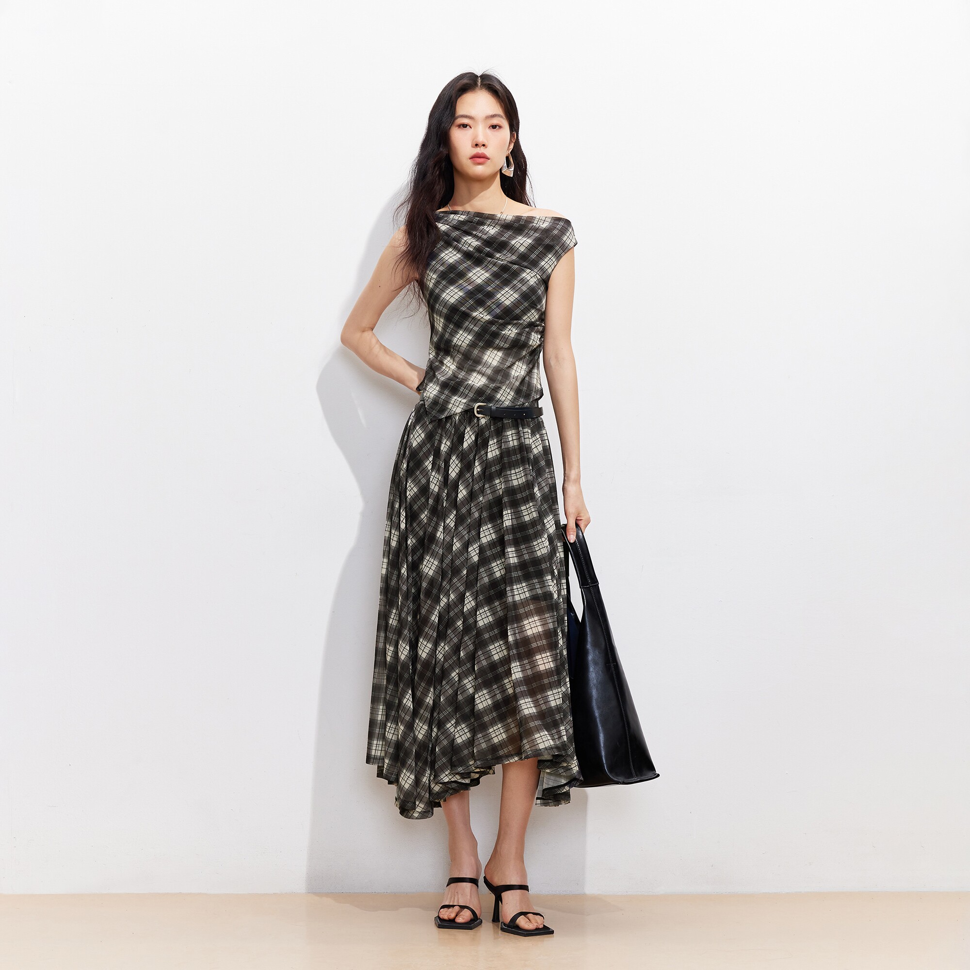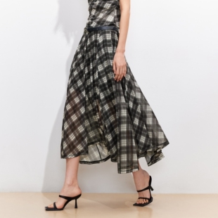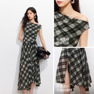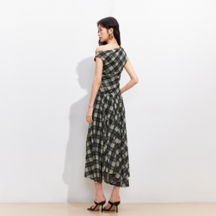 斜肩荡领网纱格纹上衣格纹半裙326101003 女2026春季 Vero Moda套装