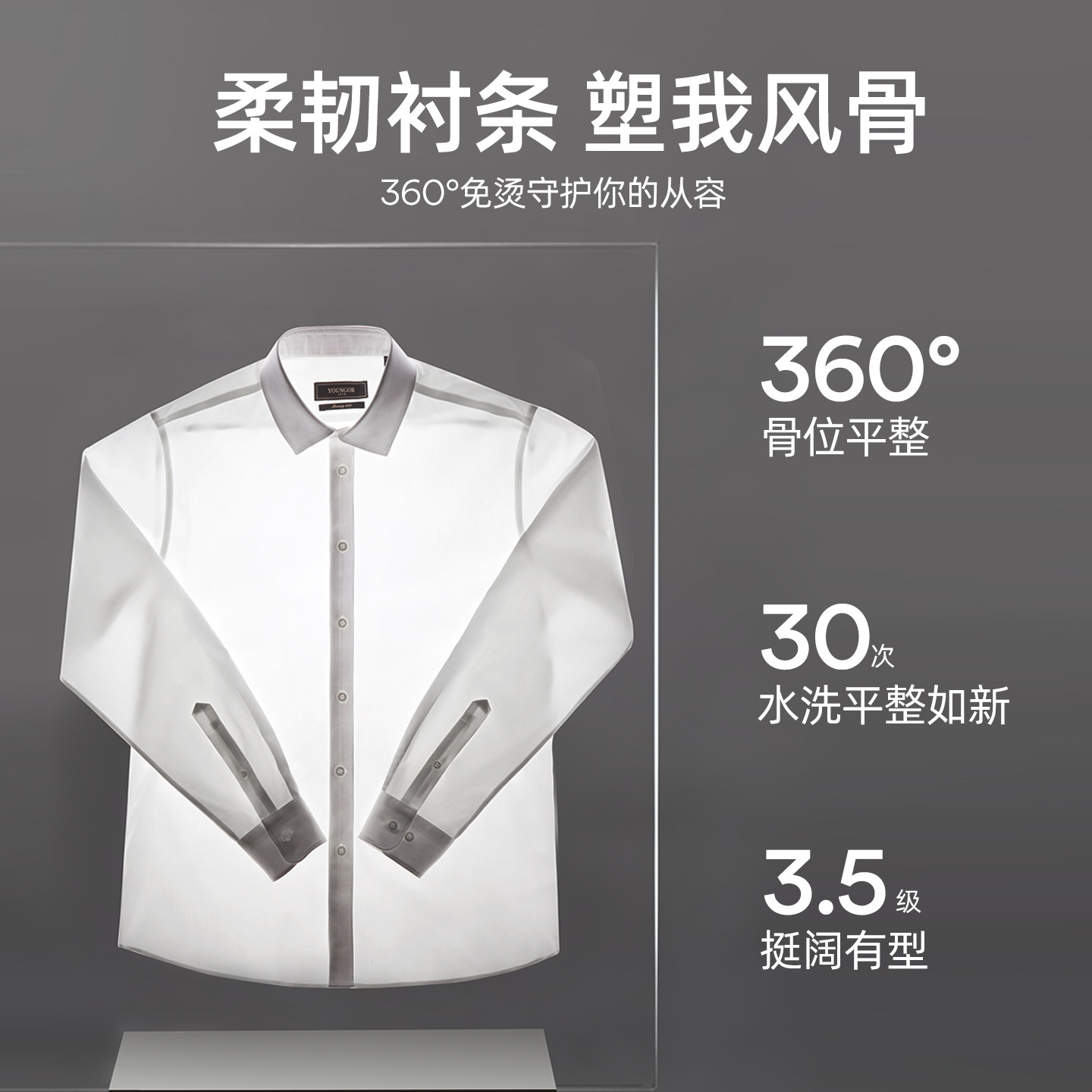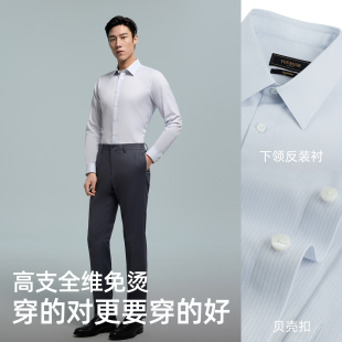 雅戈尔春季 男士 条纹长袖 全棉商务休闲修身 免烫 衬衫 衬衣 200支