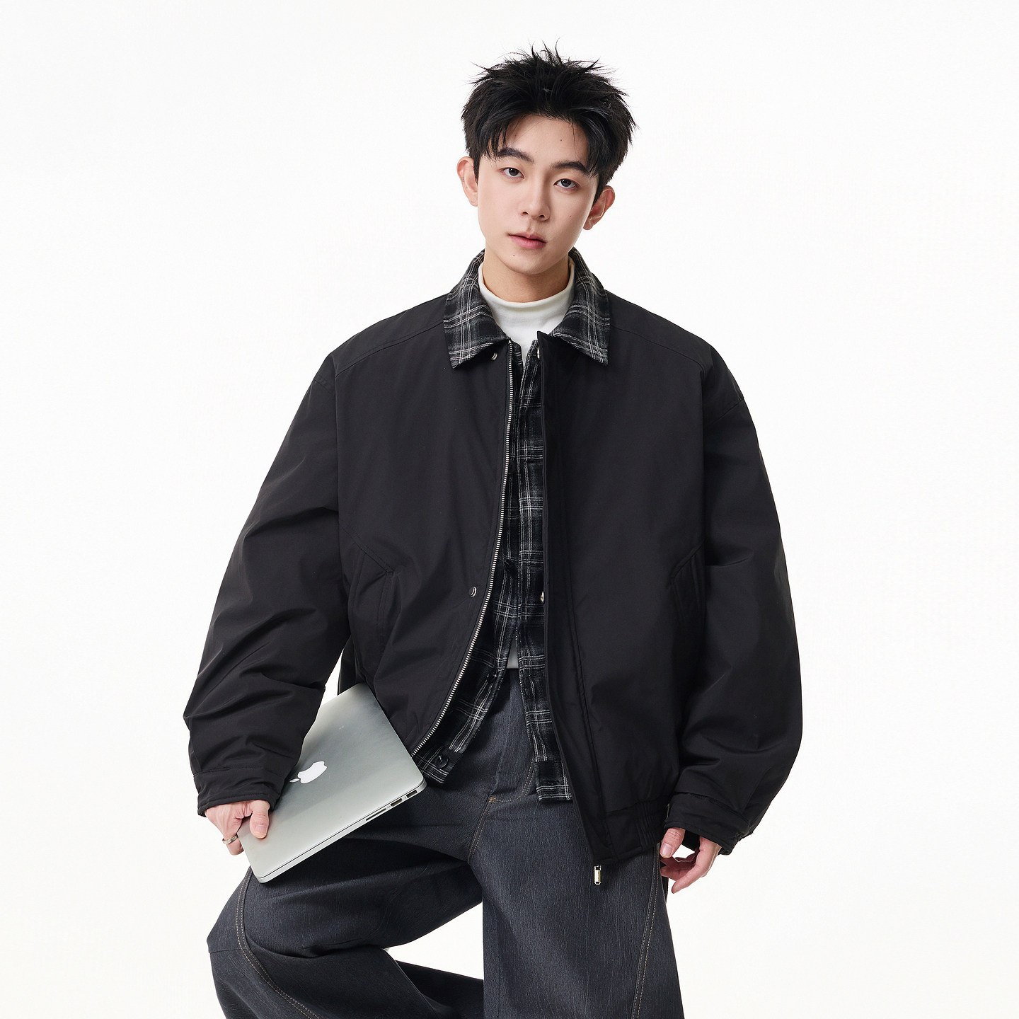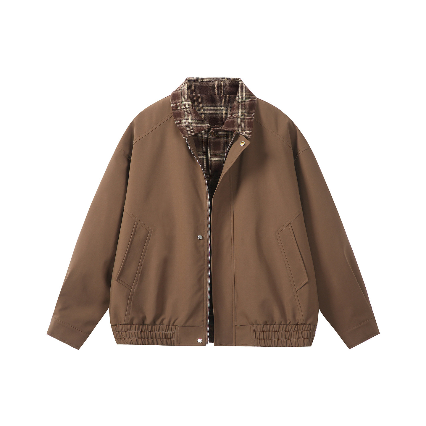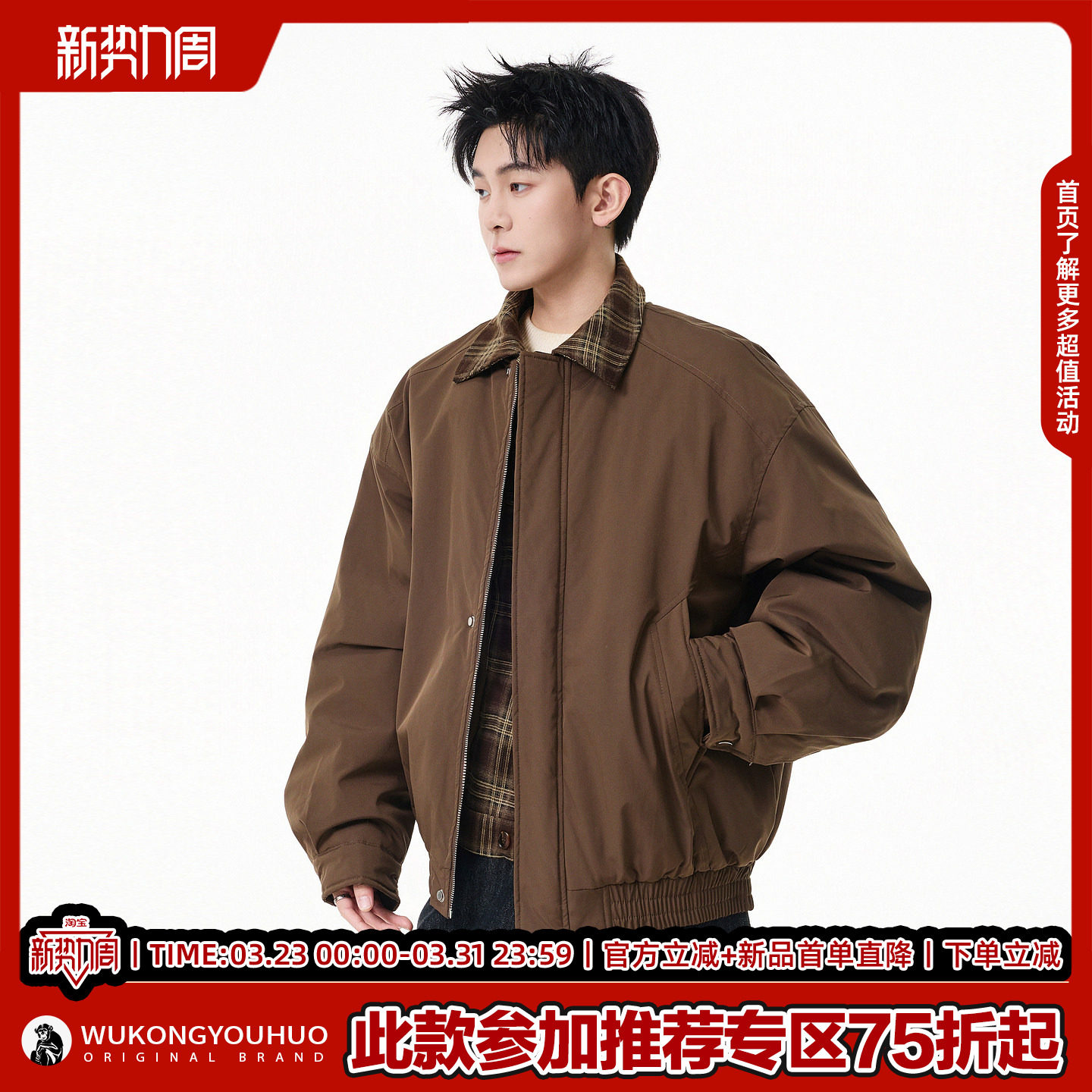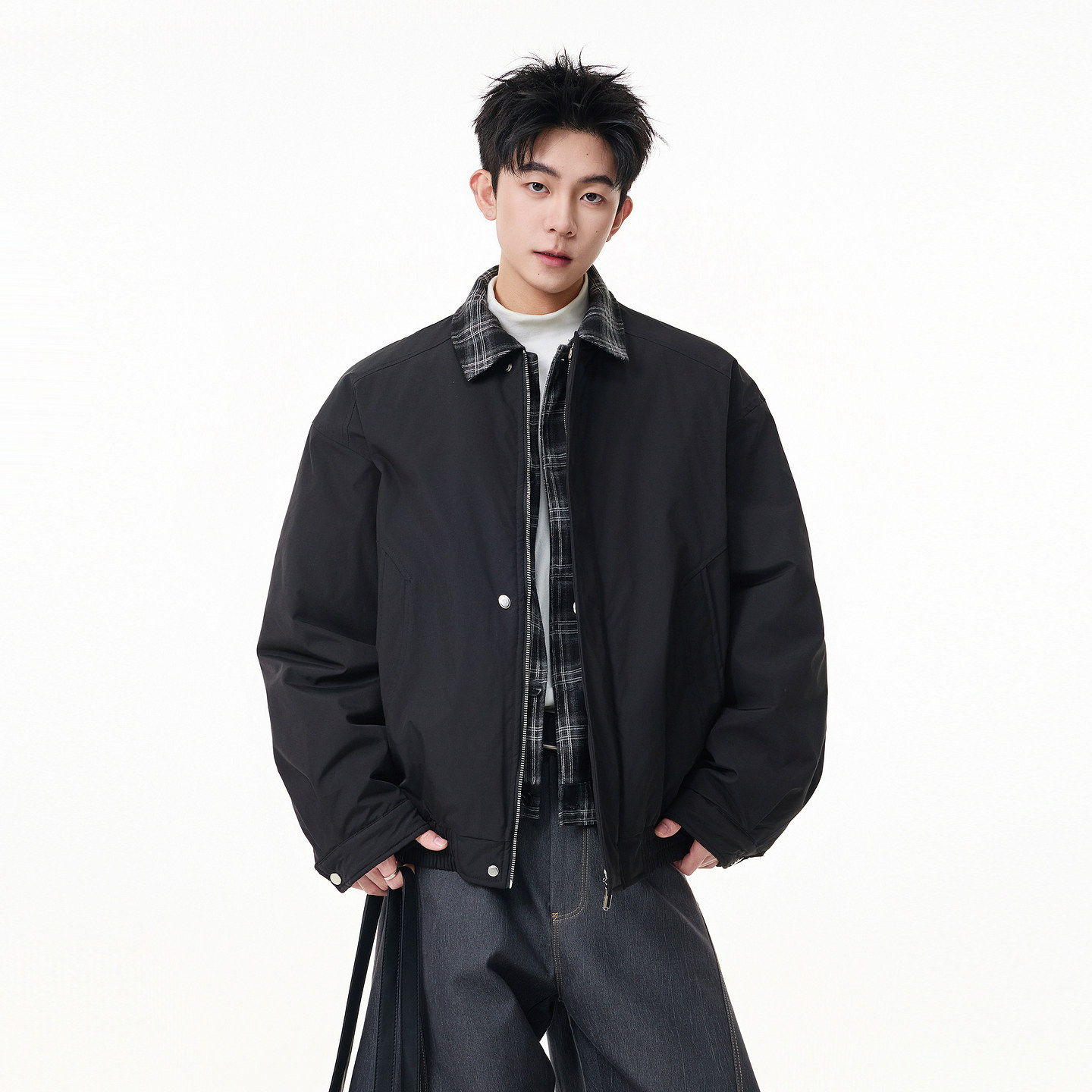 悟空有货复古格子拼接假两件外套男美式 潮牌宽松cleanfit翻领夹克