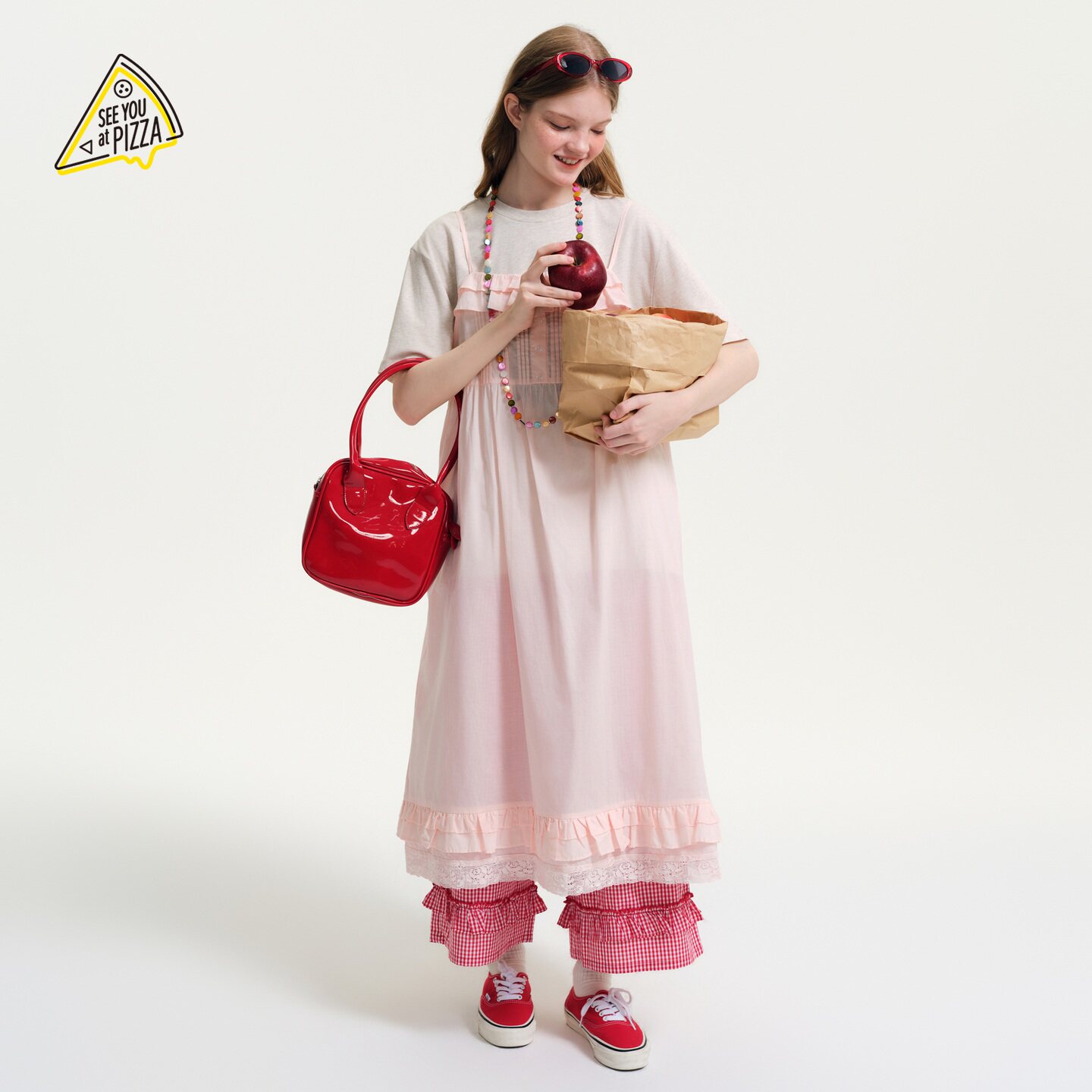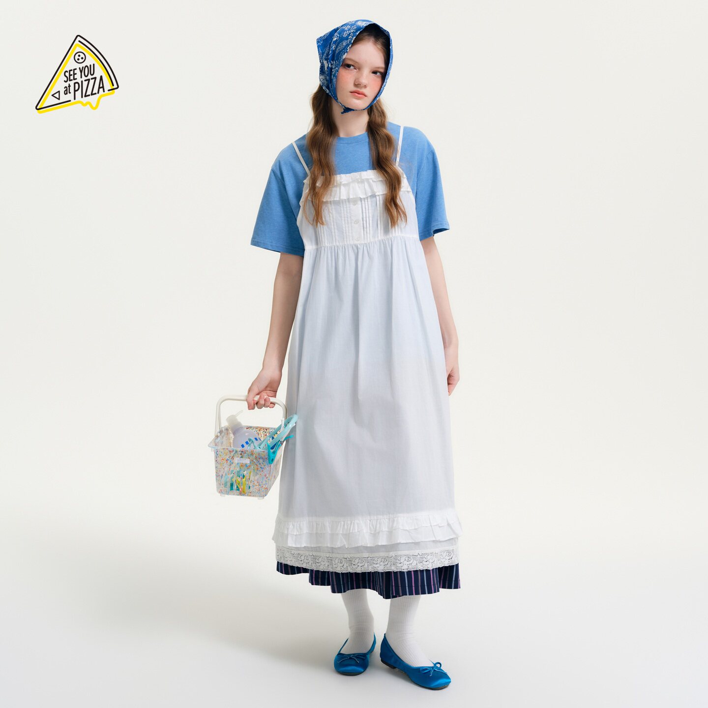 新款 SEE PIZZA连衣裙女2026夏季 蕾丝拼接吊带长裙647321 YOU