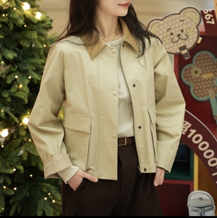 巴恩风短外套夹克yy483807 拉链茄克 484664 休闲翻领工装 日单女装