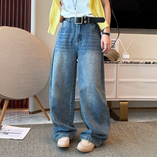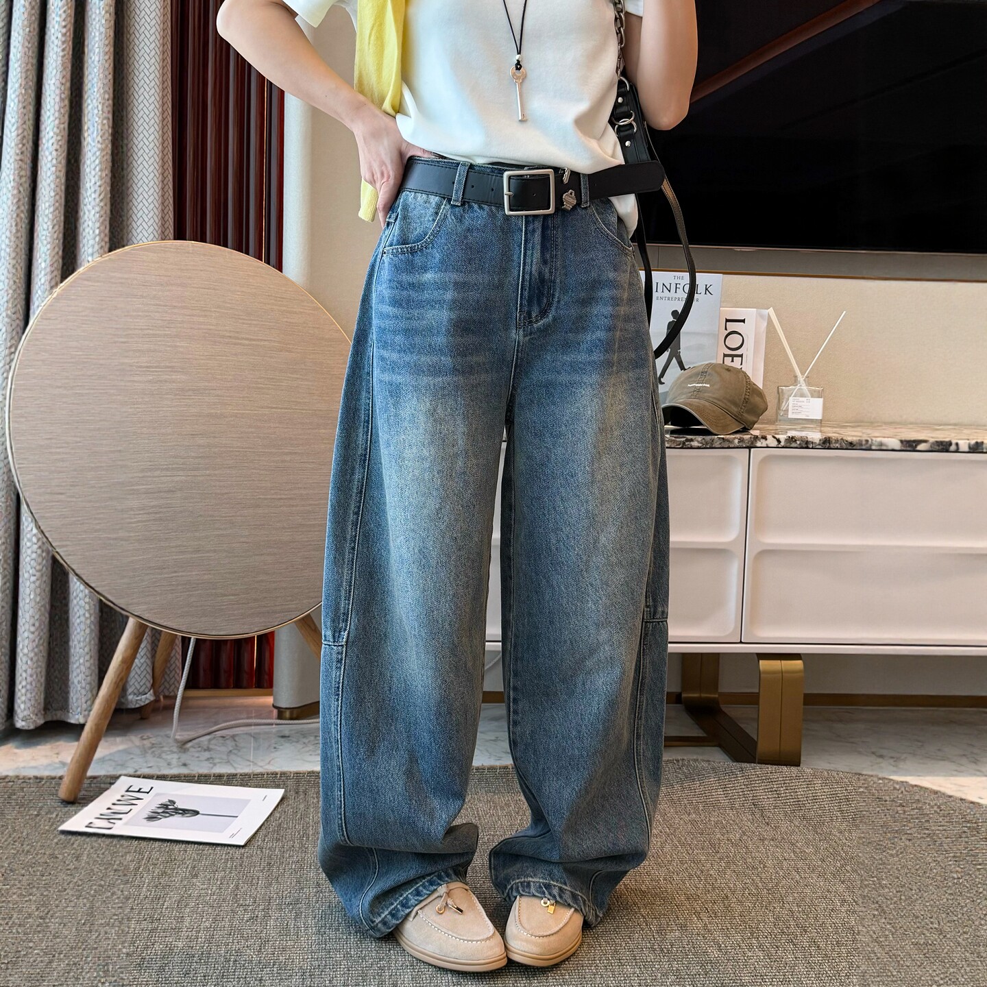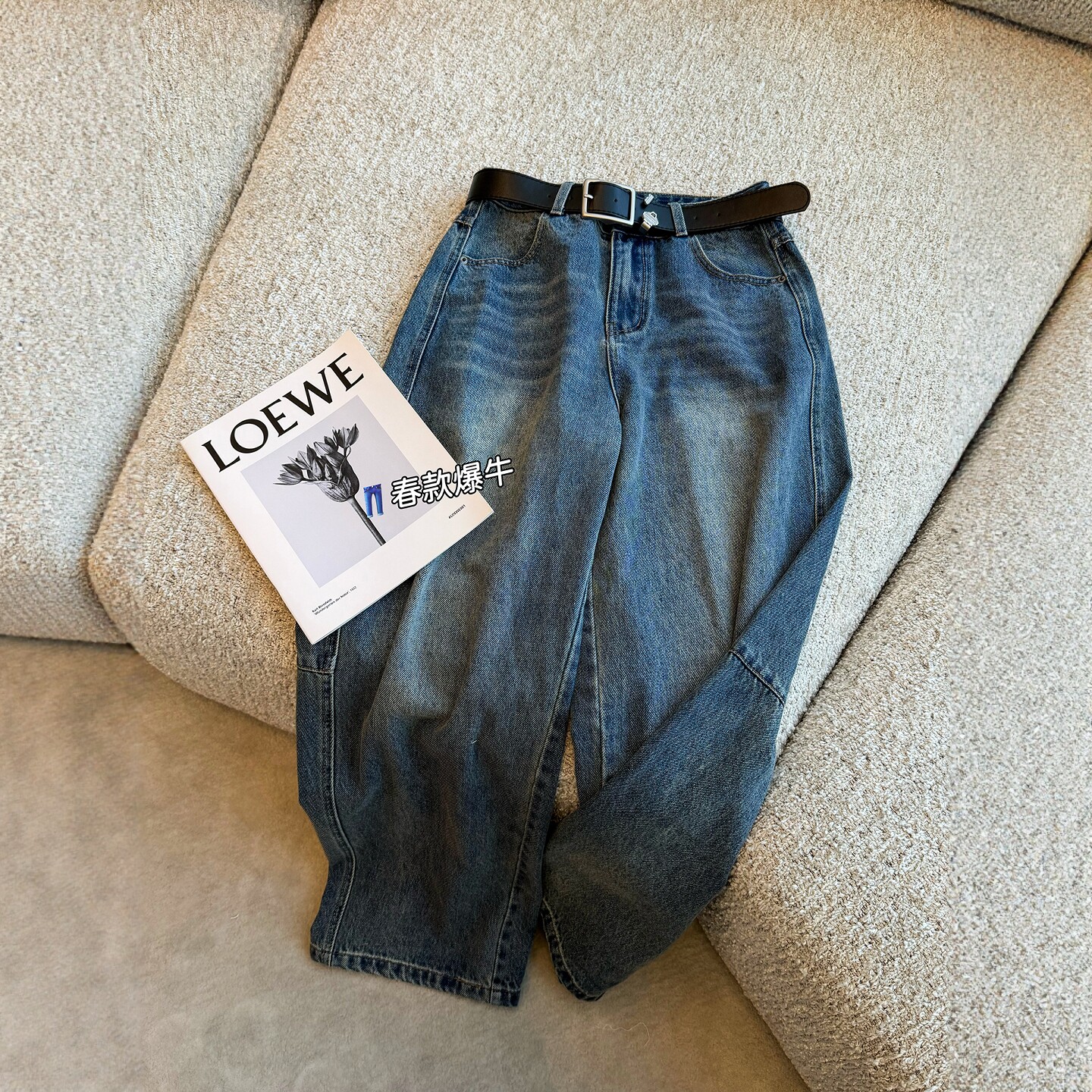 直筒裤 复古磨破弯刀阔腿牛仔裤 欧货女装 新款 子潮 女欧洲站2026春装