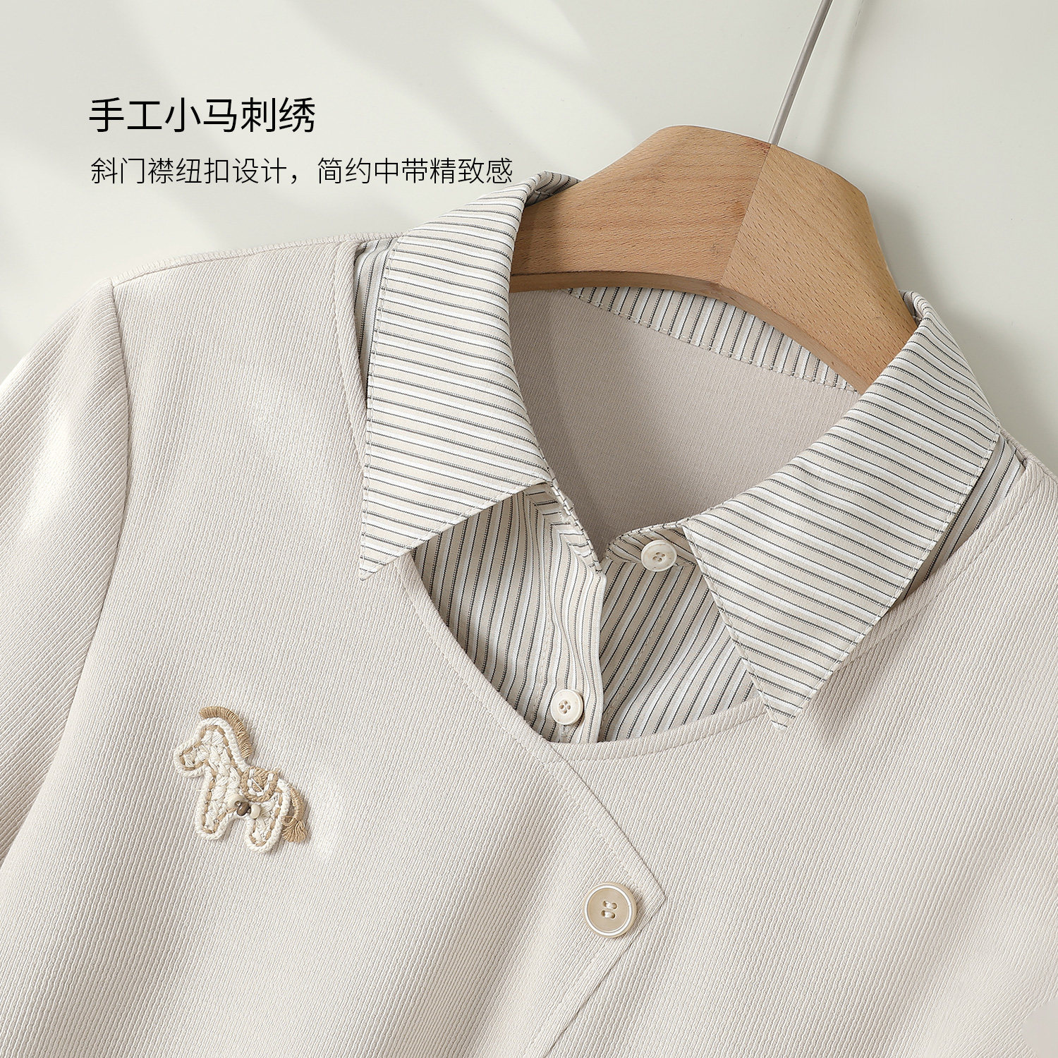 亦白 百搭小马刺绣衬衫 26春季 时尚 拼接假两件针织卫衣女 新款 YBAI