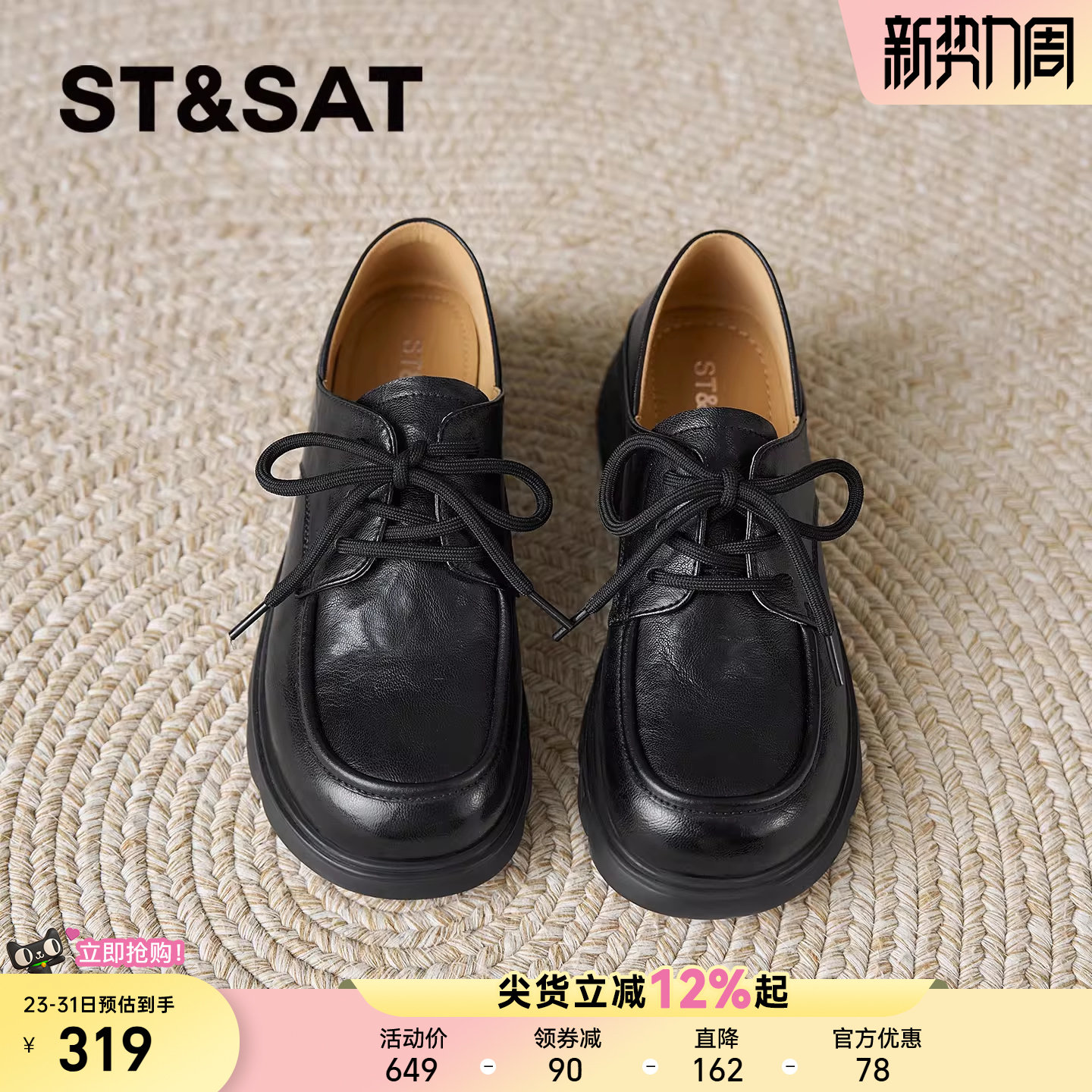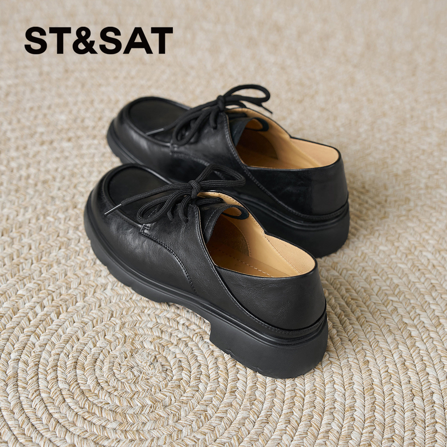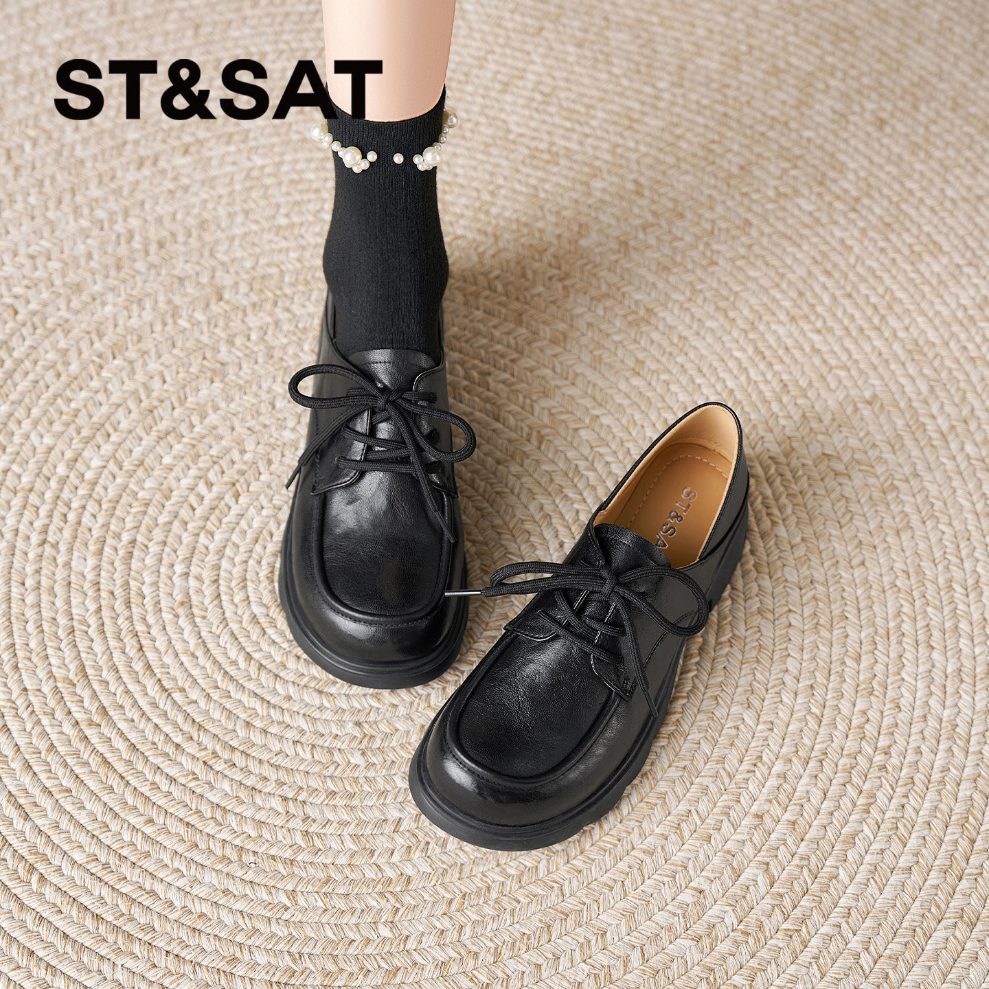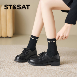 女2026年春季 系带单鞋 新款 黑色英伦风小皮鞋 时尚 星期六厚底乐福鞋