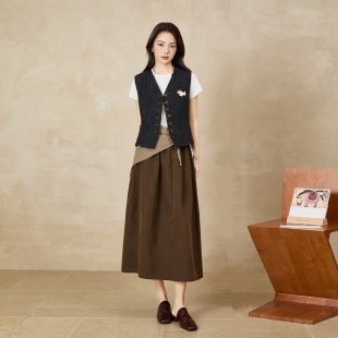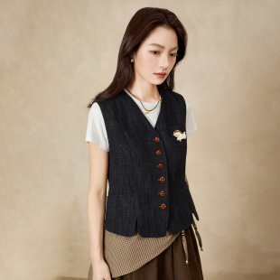 QS秸熙26春秋新款 休闲纯色百搭短马甲毛巾绣徽章收腰显瘦马夹外套