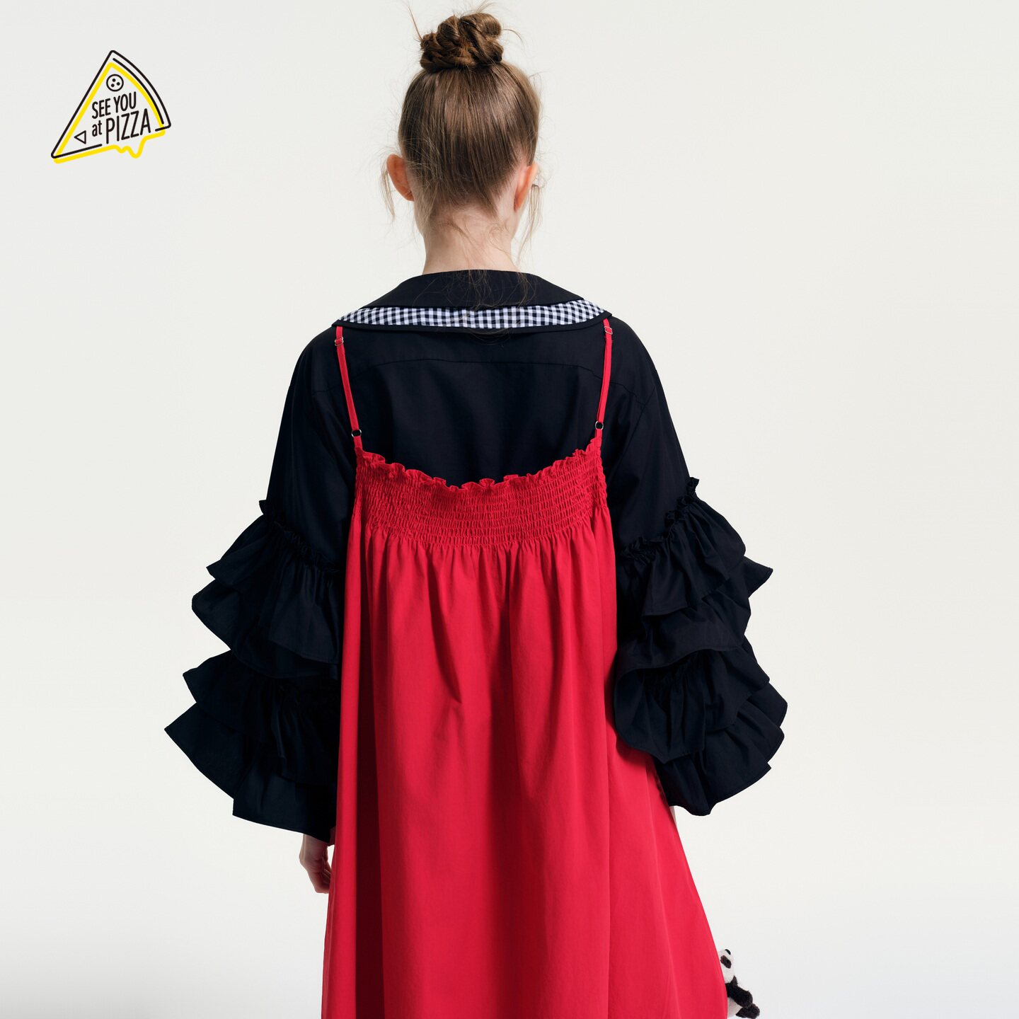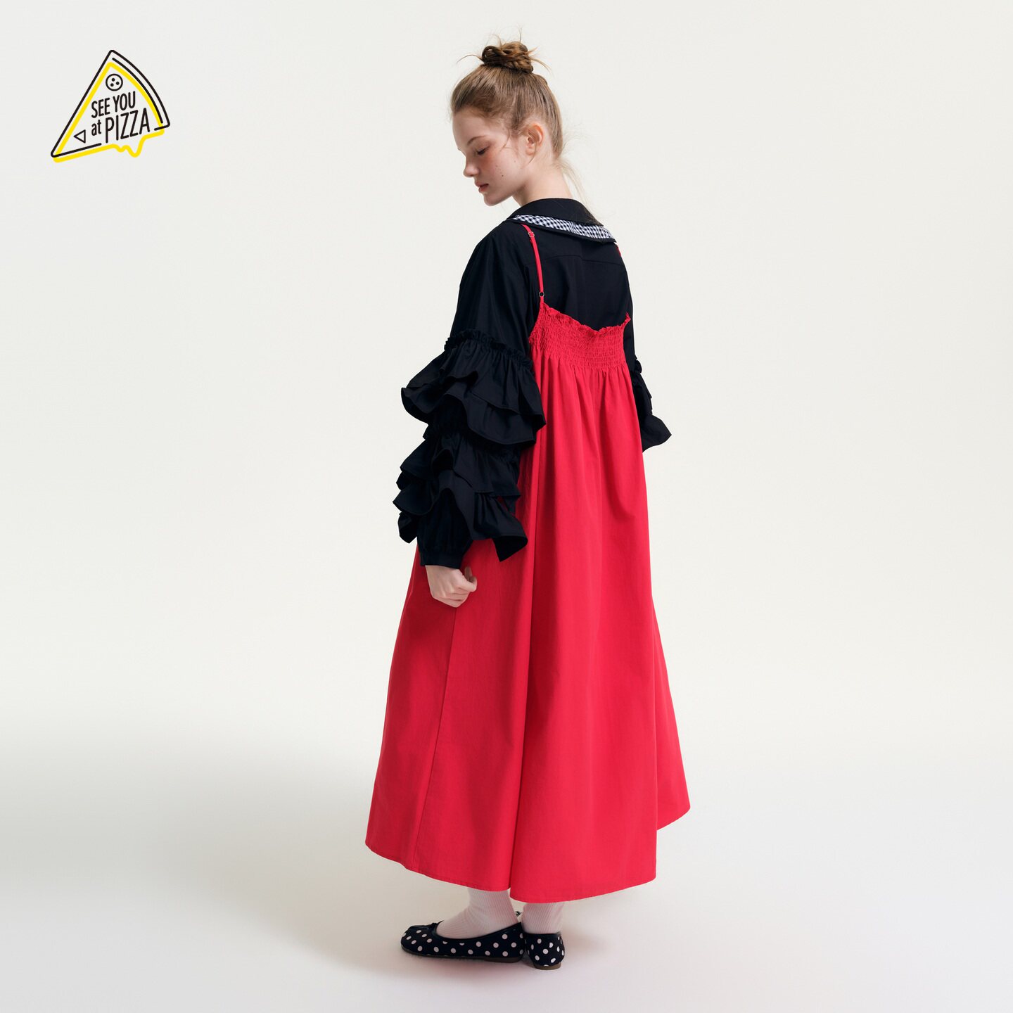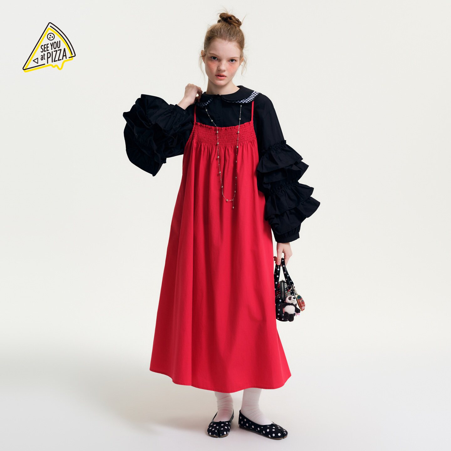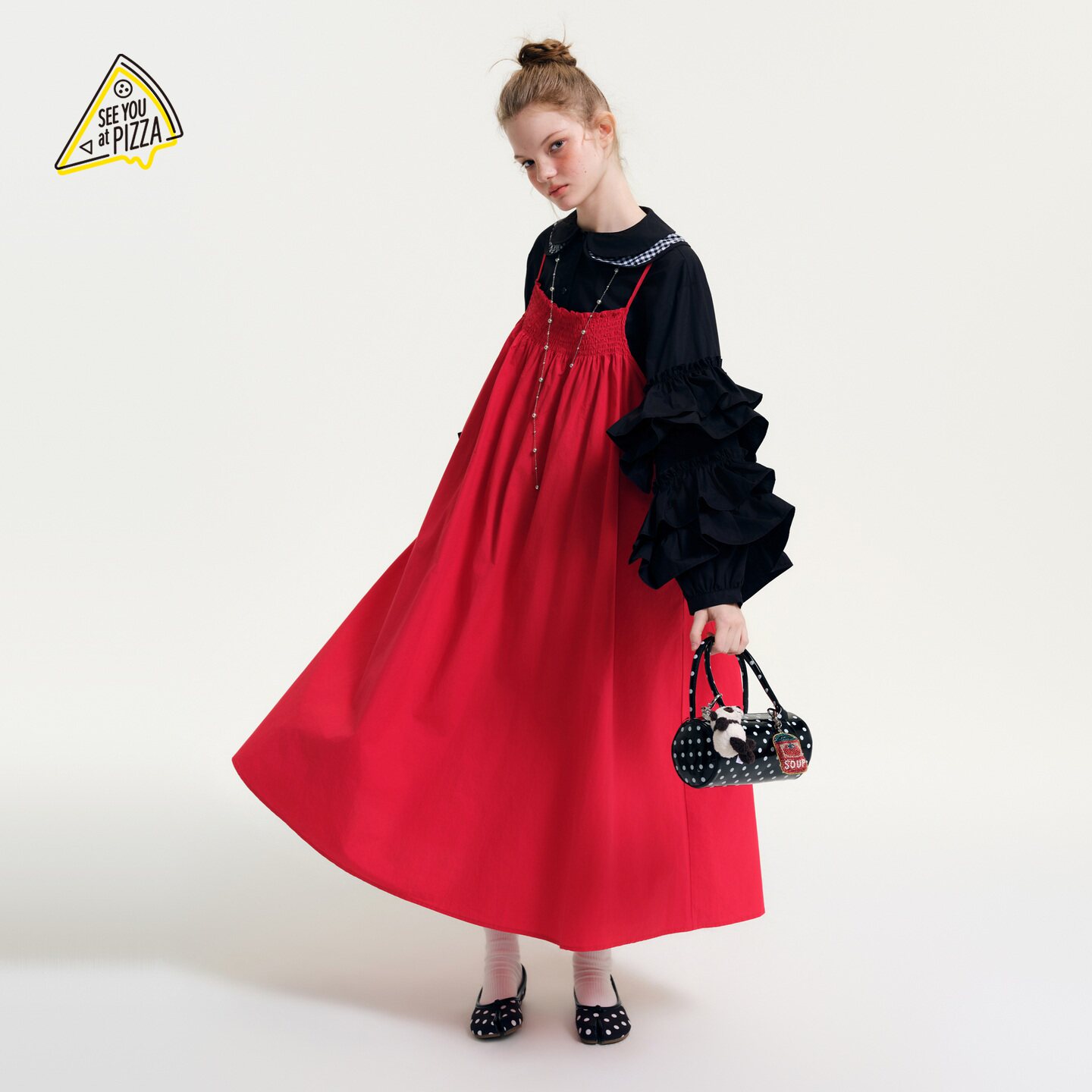 新款 SEE PIZZA连衣裙女2026夏季 红色打褶吊带裙647953 YOU