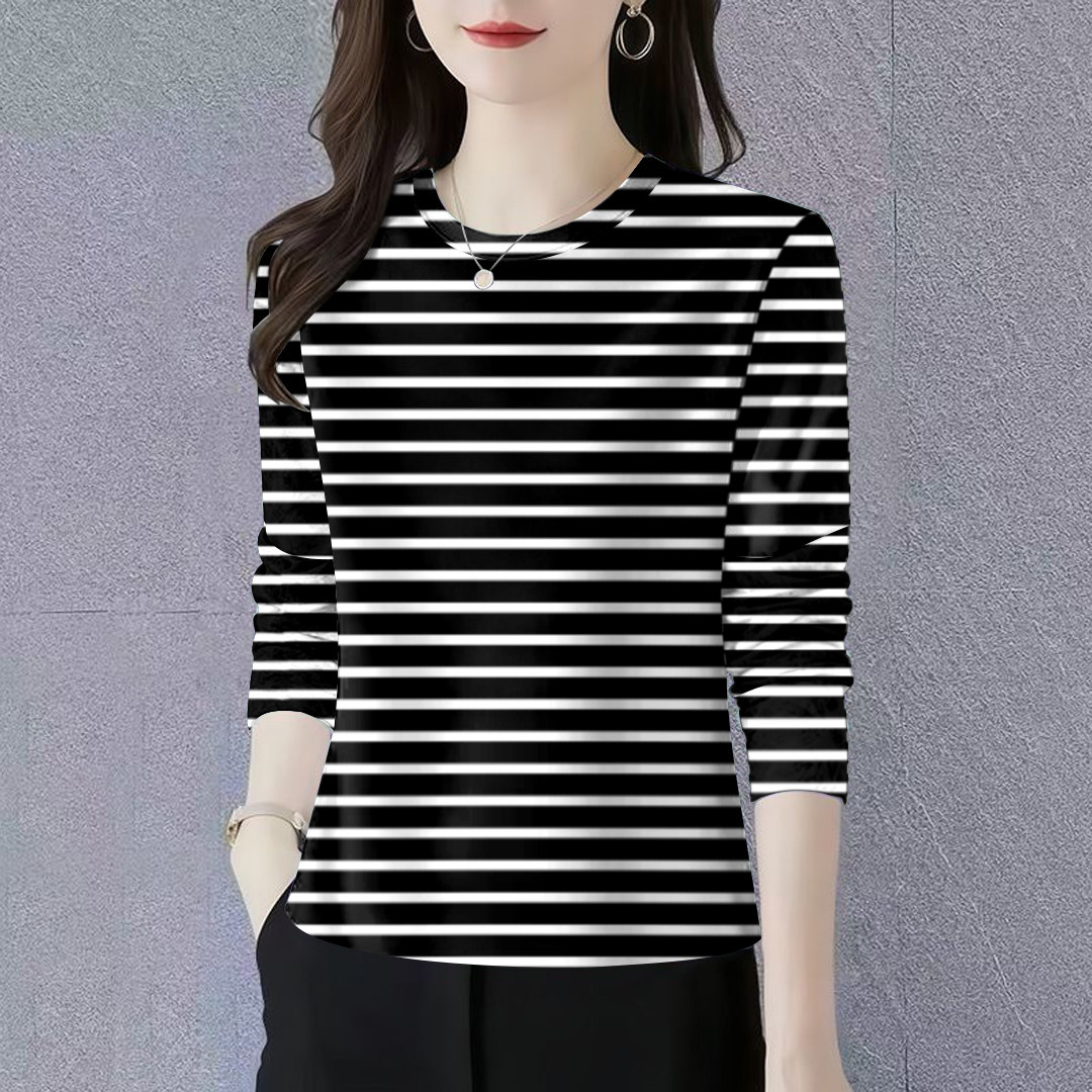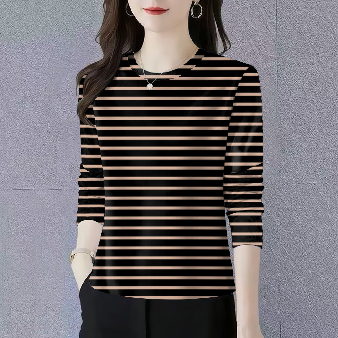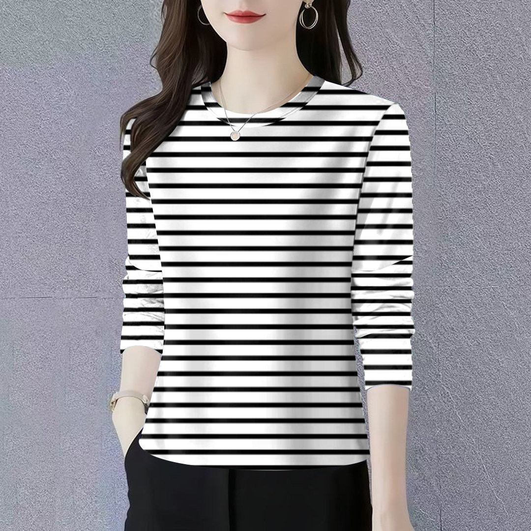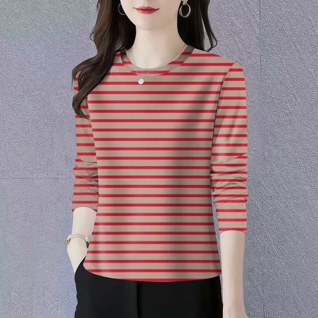 宽松显瘦遮肚T恤女打底衫 上新 圆领条纹长袖 新款 上衣潮 休闲女装