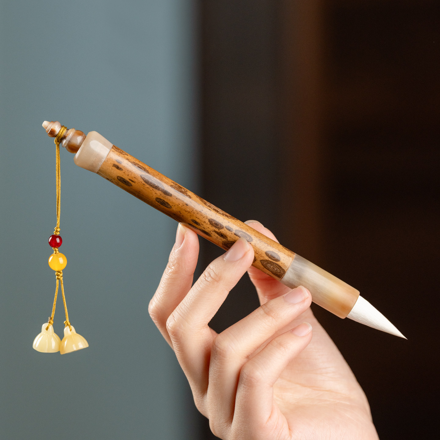御宝阁鸡翅木毛笔架笔挂文房四宝毛笔书法练字套装 实木笔搁笔山笔架 初学小学生三年级毛笔字初学者入门套装