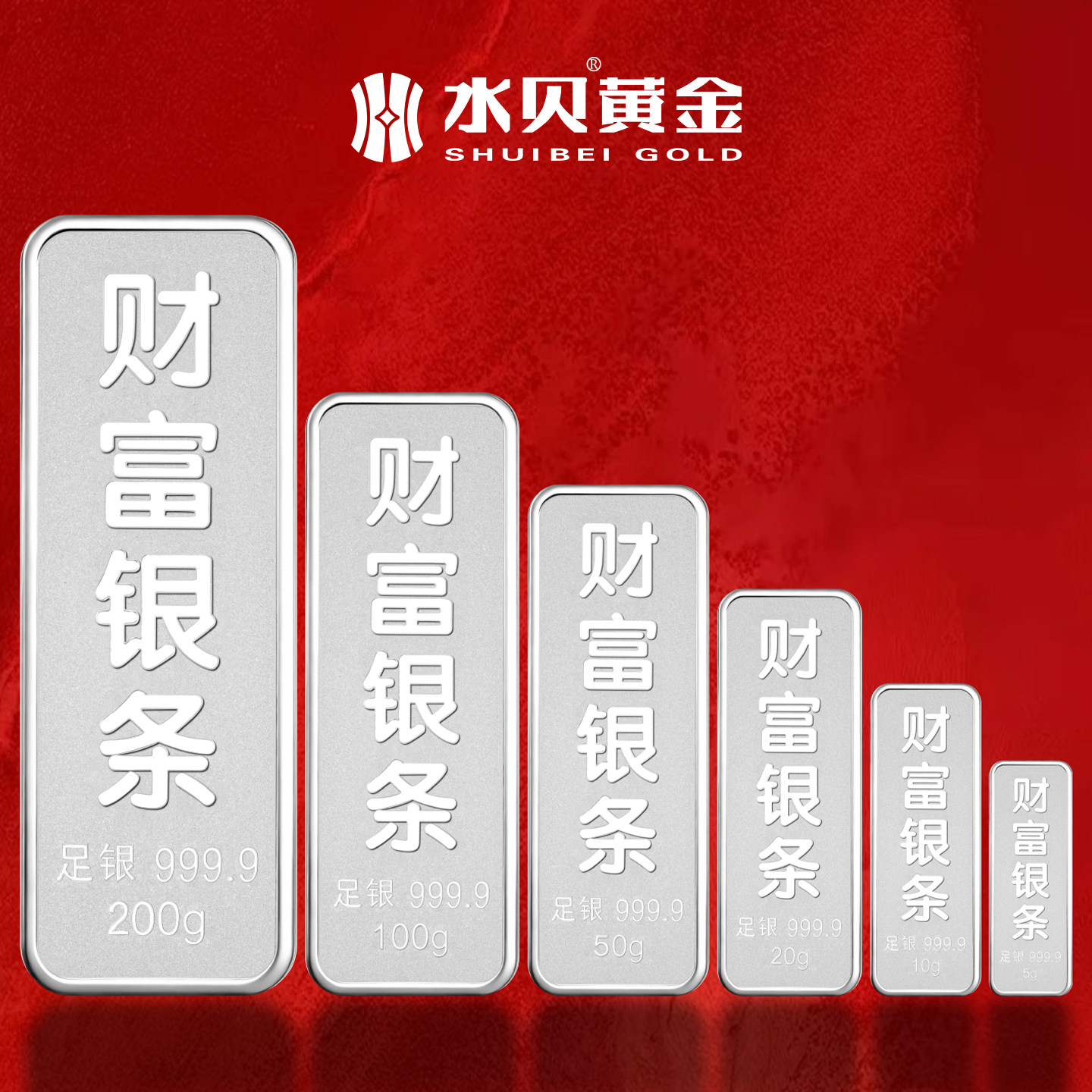 水贝银饰财富银条足银9999银砖投资银条白银块储值礼物收藏